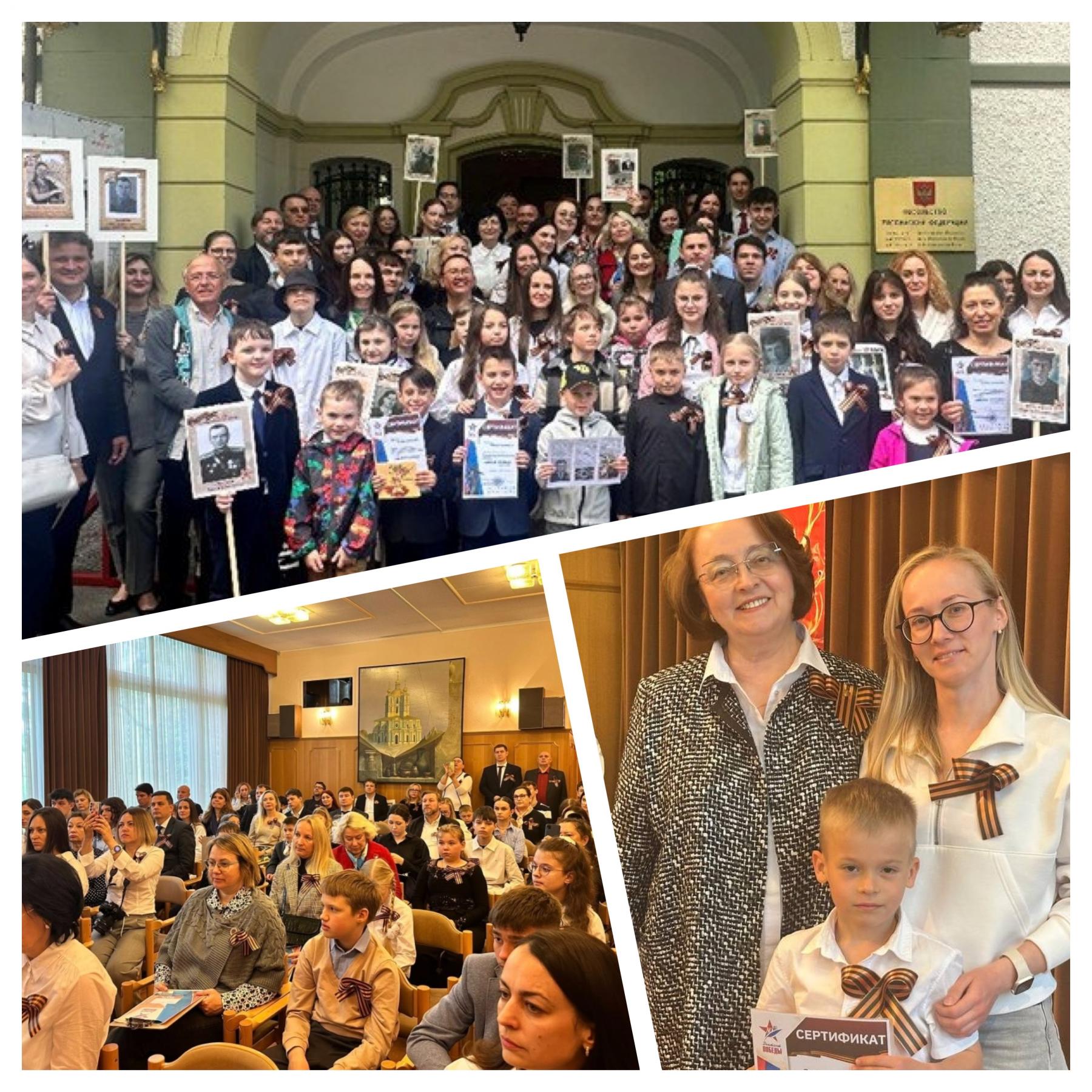 Одновременно с «Диктантом Победы» нашим гостям были представлены развернутые в помещениях Посольства тематические выставки: работы учащихся начальной школы при Посольстве под названием «Есть в моем городе такая улица», подготовленные школьниками макеты в виде диорам с изображениями ключевых сражений и военной техники эпохи Великой Отечественной войны, а также уже упомянутая мною фотовыставка «Бессмертный полк». Дети также рассказывали о боевом пути своих дедов и прадедов. Наши гости с энтузиазмом приняли участие в совместном фотографировании с портретами ветеранов и в увенчавшем мероприятие концерте с исполнением песен военных лет. Многие участники хора принесли портреты своих родственников-ветеранов.