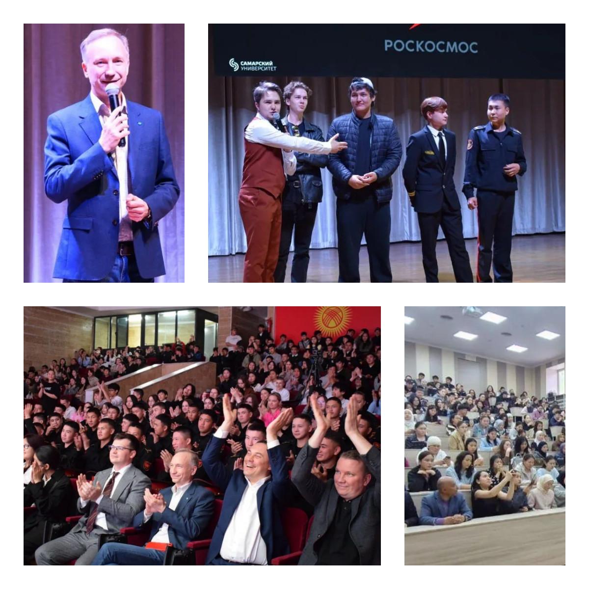 В рамках мероприятий «Международной космической недели», посвященной 65-летию первого полета в космос Юрия Гагарина, в Киргизии прошли лекции о ракетах-носителях, аэрокосмических технологиях и искусственном интеллекте, а также впервые состоялось научпоп-шоу «Очень научные дела». Молодые учёные Самарского университета имени Сергея Королёва в формате живого диалога рассказали старшеклассникам и студентам о фотонных кристаллах, компьютерах будущего, спутнике Юпитера Каллисто и о том, как старые летательные аппараты обретают вторую жизнь. Встречи прошли в Киргизско-Российском Славянском университете имени Баласагына и КГТУ имени Раззакова. В списке мероприятий Фестиваля выставка «Космический феномен Киргизии» о вкладе киргизской науки в освоение космоса. А еще – проходит «Звёздный диктант. Поехали!»: проверить себя могут жители Бишкека, Оша, Канта и других городов. Почётный гость фестиваля – первый космонавт Киргизии, Герой страны Салижан Шарипов.