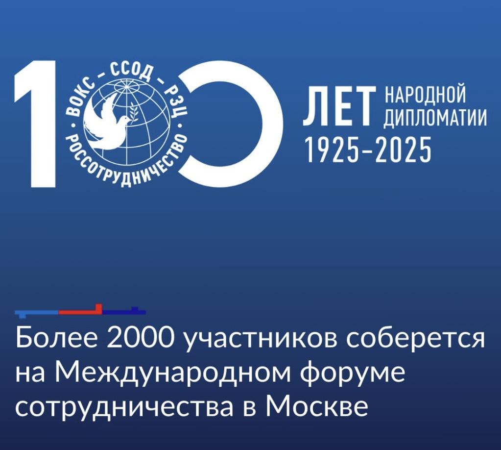 В Москве пройдет «Международный форум сотрудничества», приуроченный к 100-летию народной дипломатии