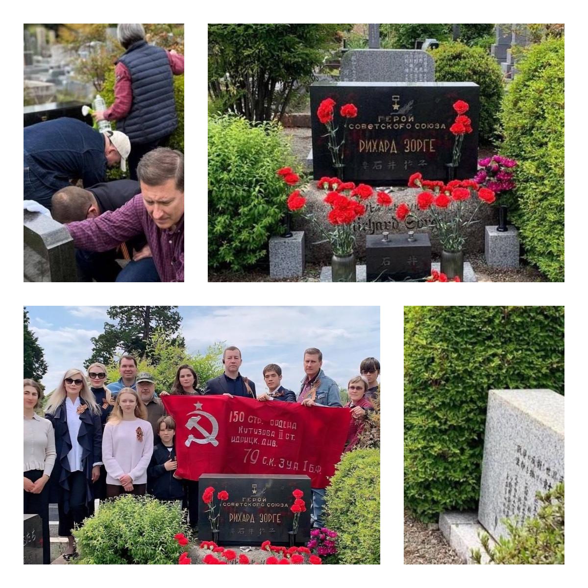 В преддверии Дня Победы в Великой Отечественной войне сотрудники дипломатической миссии вместе с членами семей и группой активистов из проживающих в Японии соотечественников посетили могилу Героя Советского Союза Рихарда Зорге, расположенную на токийском кладбище Тама. Участники мероприятия провели уборку, возложили цветы к мемориалу разведчика, а также развернули Знамя Победы.