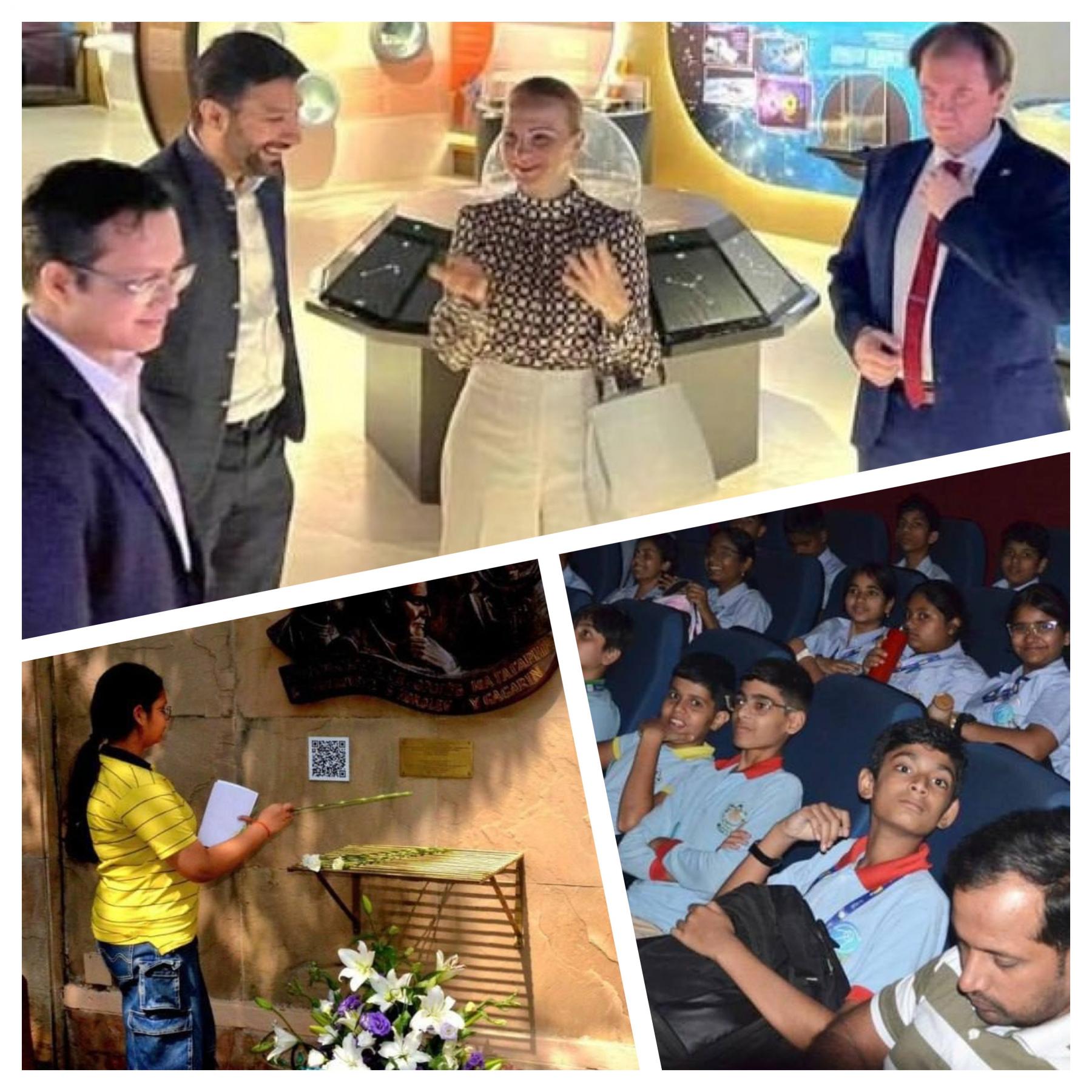 А в Мумбаи Денис Матвеев вместе с начальником отдела координации международной деятельности Центра подготовки космонавтов Игорем Корешевым встретились с ректором университета Мумбаи профессором Равиндрой Д. Кулкарни и студентами ВУЗ-а. Поговорили о вопросах психологической и физической подготовки к длительным полетам и навыков, необходимых для пребывания в космосе. По окончании визита в «Русском Доме» в Нью-Дели прошел показ фильма «Время первых» о первом выходе человека в открытый космос. Это был премьерный показ картины в Индии. Также гости возложили цветы к мемориальному панно первопроходцев космоса — Константина Циолковского, Сергея Королева и Юрия Гагарина.
