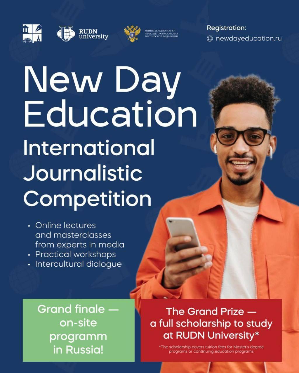 РУДН запускает Международный конкурс журналистских работ «Образование послезавтра» при поддержке Минобрнауки России. К участию приглашаются молодые люди 18–35 лет, живущие за пределами России и не имеющие российского гражданства. Студенты, журналисты, блогеры, политологи, активисты — все, кто видит будущее в медиа, образовании и культуре. Что ждёт участников: онлайн-школа с международными экспертами (на английском языке), знакомство с Россией и ведущими университетами, создание собственного медиапроекта и возможность выиграть грант на обучение в РУДН. Этапы: подача заявок — до 22 сентября 2025 года. Онлайн-школа — сентябрь–октябрь 2025 года. Очный финал в Москве — ноябрь 2025 года. Узнать подробнее и зарегистрироваться можно на сайте. Если остались вопросы, пишите на почтовый адрес: newdayeducation2025@gmail.com