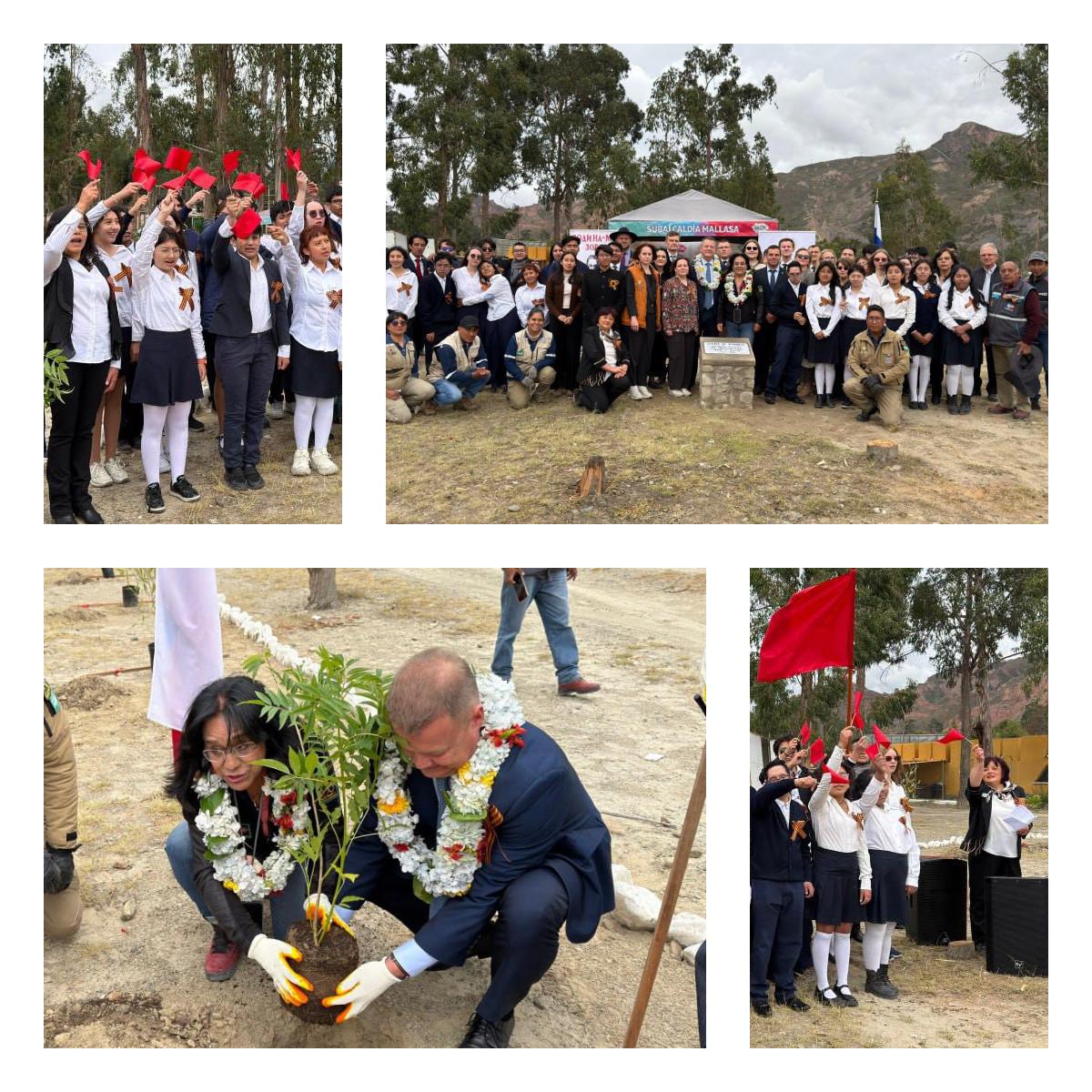 В Боливии, в районе Мальяса (Ла-Пас) состоялась церемония открытия «Сада памяти», посвященная 27 миллионам погибших в годы Великой Отечественной войны. Мероприятие было организовано Посольством Российской Федерации в Боливии при содействии администрации района Мальяса и «Русского Дома». В церемонии приняли участие глава района Мальяса Мария дель Кармен Наварро, Посол России в Боливии Дмитрий Верченко, представители организаций, учащиеся Русско-боливийской школы и жители города. В выступлениях было подчеркнуто значение сохранения исторической памяти и объединяющая роль международной акции «Сад памяти», реализуемой по инициативе Президента России. В рамках церемонии были высажены деревья текома и чакатеа пурпура, символизирующие жизнь, надежду и преемственность поколений. Ключевым моментом стала совместная посадка дерева Марии дель Кармен Наварро и Дмитрия Верченко, после чего к акции присоединились все участники. Завершением церемонии стало исполнение песни «День Победы» на русском и испанском языках, что подчеркнуло единство памяти и дружбу народов. Мероприятие стало вкладом в развитие российско-боливийского гуманитарного сотрудничества и продвижение ценностей памяти, уважения и мира