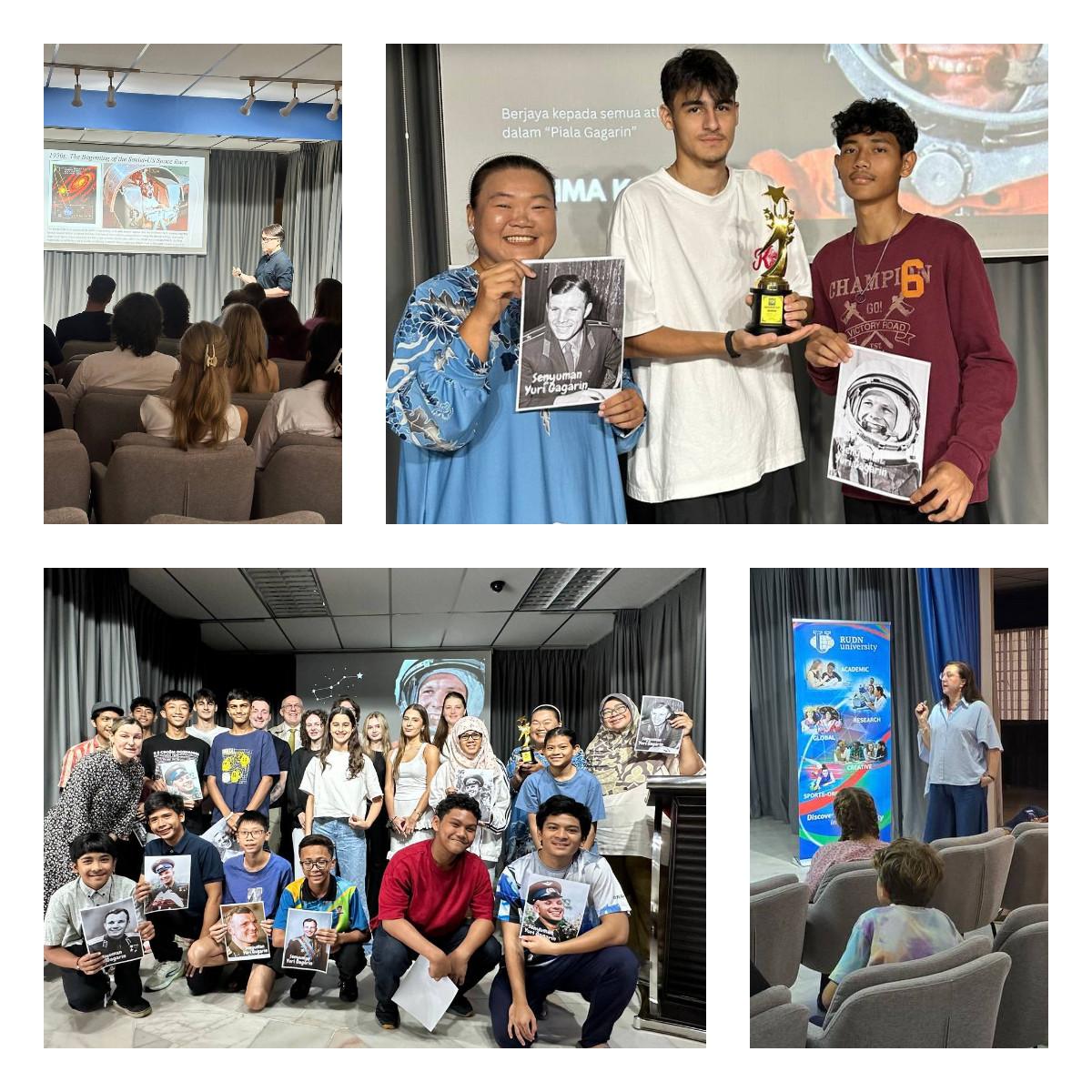 В Малайзии прошёл цикл мероприятий, посвящённых «Дню космонавтики» и 65-летию первого полёта человека в космос. Программа объединила образовательные, культурные и научно-популярные события, проходившие на разных площадках в течение апреля. В Центре русского языка и культуры «Дача» состоялась научно-популярная лекция «Невидимая вселенная: что скрывает космос?». Участники познакомились с современными представлениями о тёмной материи, узнали, как учёные доказывают существование «невидимого» и какие эксперименты ведутся сегодня для его изучения. Лекцию провела кандидат педагогических наук, доцент Елена Владимировна Кондакова, имеющая более двадцати лет опыта в области популяризации астрономии. В последующие дни в «Русском Доме» в Куала-Лумпуре прошёл цикл мероприятий, приуроченных к памятной дате. Программа включала тематические уроки, кинопоказы в рамках кинофестиваля имени Константина Циолковского и проекта «Дни документального кино», проведение звёздного диктанта «Поехали», заседание Исторического клуба с участием историка и публициста Энзо Сима, а также мероприятие для малайзийских школьников с викториной, презентацией и показом хроники полёта Гагарина. В этот же день был представлен и запущен Кубок Гагарина — чемпионат по баскетболу, реализуемый в партнёрстве со школой SMK Seri Ampang. Космическая тематика получила продолжение в Университете Куала-Лумпура (UniKL MIAT), где 14 апреля 2026 года преподаватели университета Елена Кондакова и Алена Белозерцева провели лекцию «Пионеры космоса».