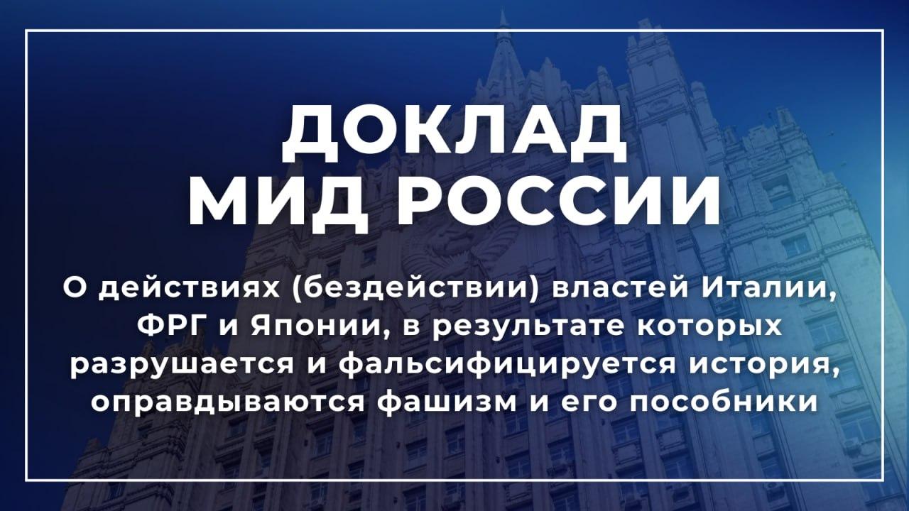 МИД России опубликовал Доклад «О действиях (бездействии) властей Италии, ФРГ и Японии, в результате которых разрушается и фальсифицируется история, оправдываются фашизм и его пособники».