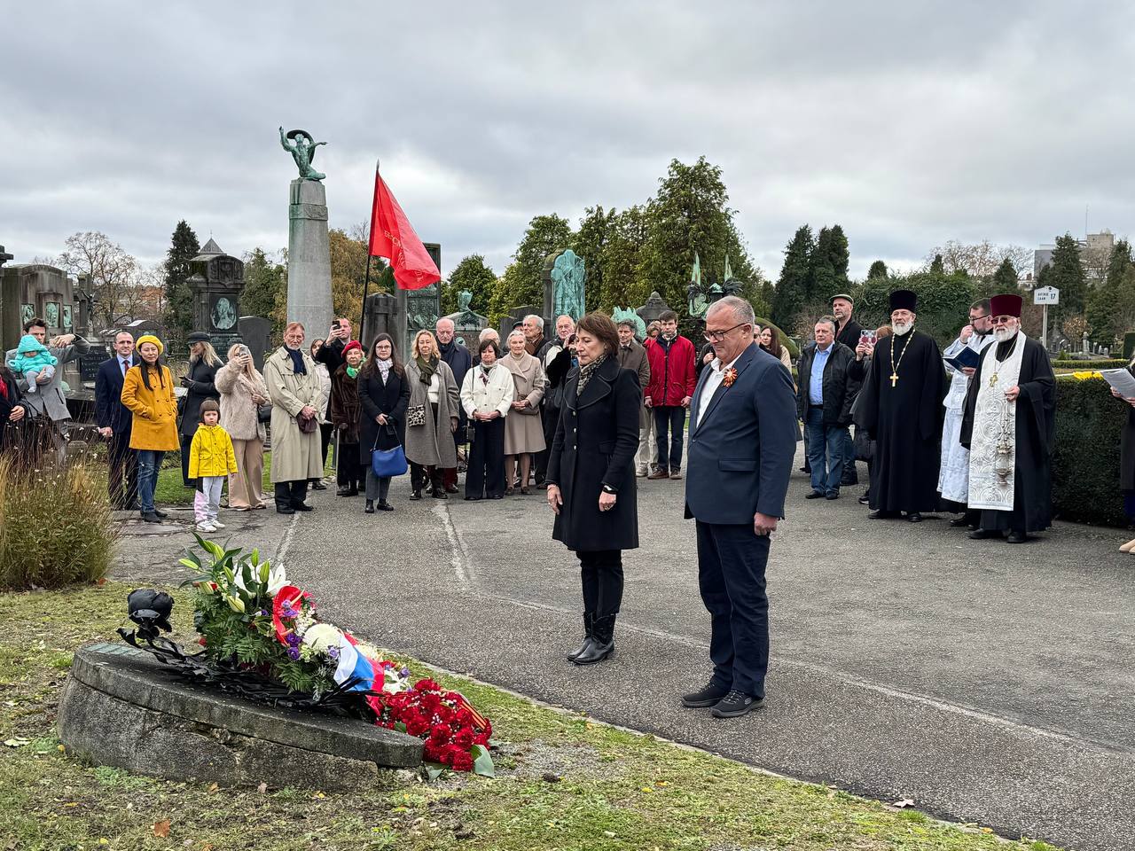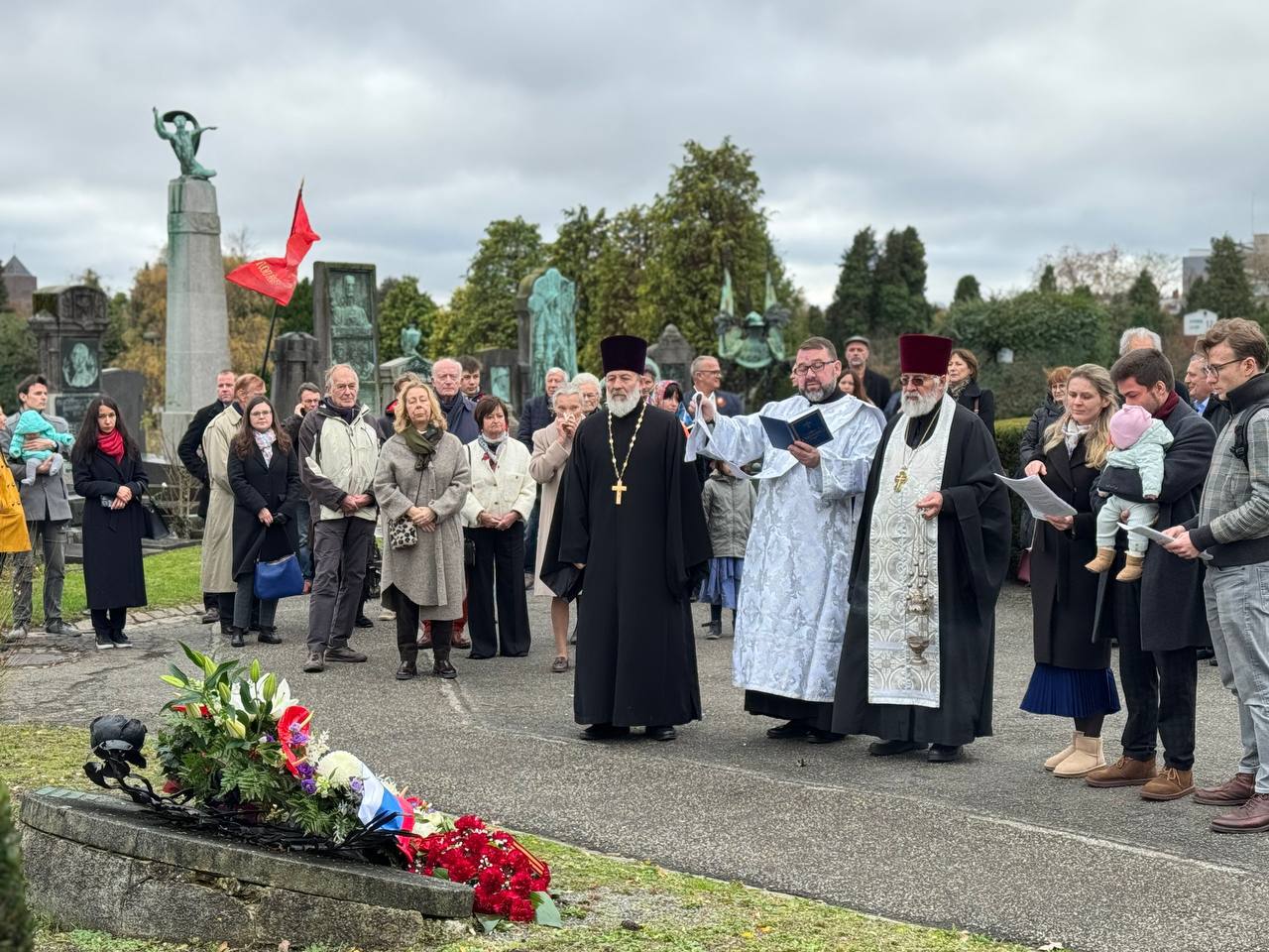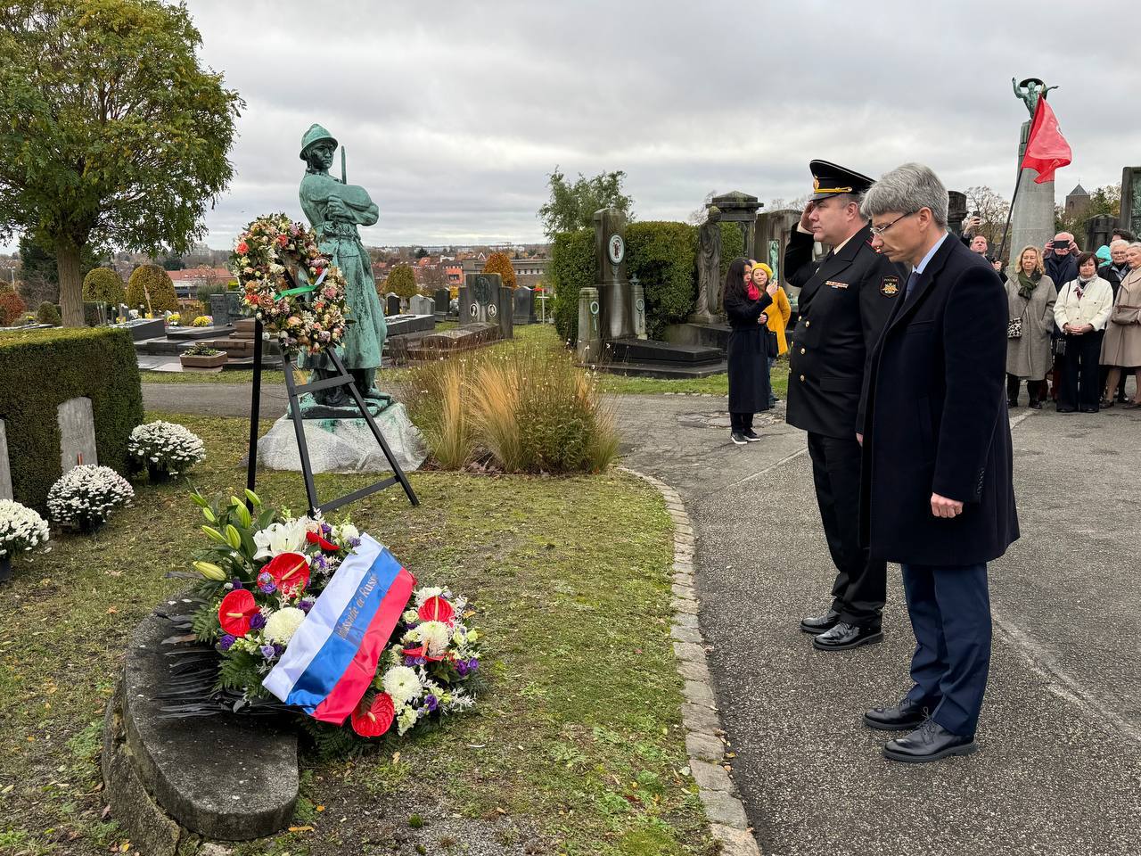 На кладбище коммуны Иксель прошла церемония возложения венков к могилам русских солдат