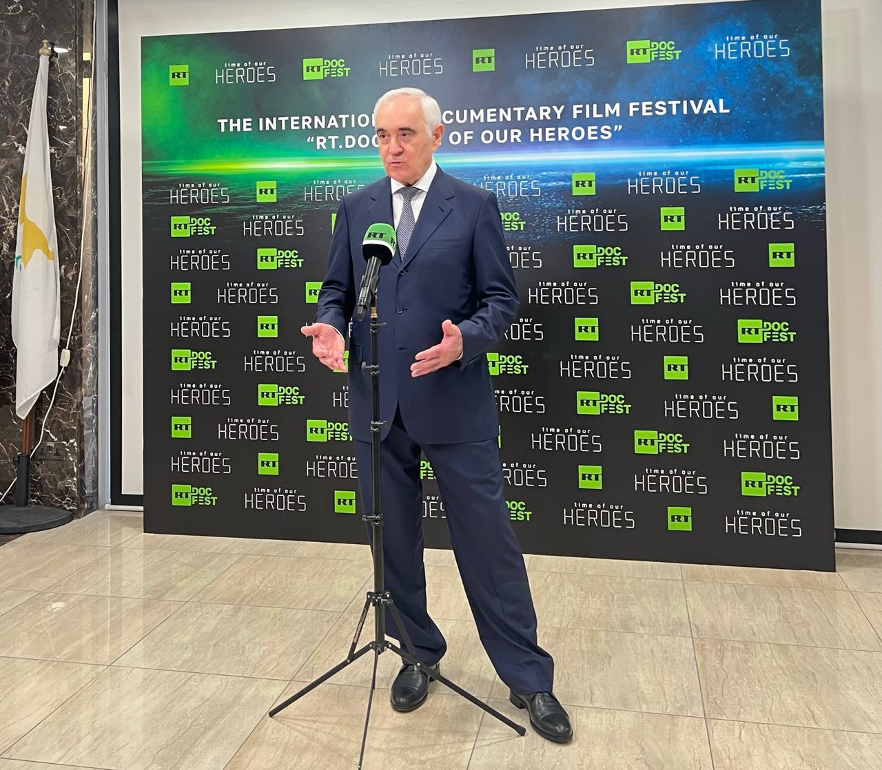 В «Российском центре науки и культуры» в Никосии состоялось торжественное открытие фестиваля документального кино «RT.Док: Время наших героев», организованного при поддержке телеканала «RT». Посол Российской Федерации в Республике Кипр Мурат Зязиков обратился к гостям мероприятия с приветственным словом, подчеркнув важность подобных инициатив для сохранения исторической правды и памяти о героях нашего времени: