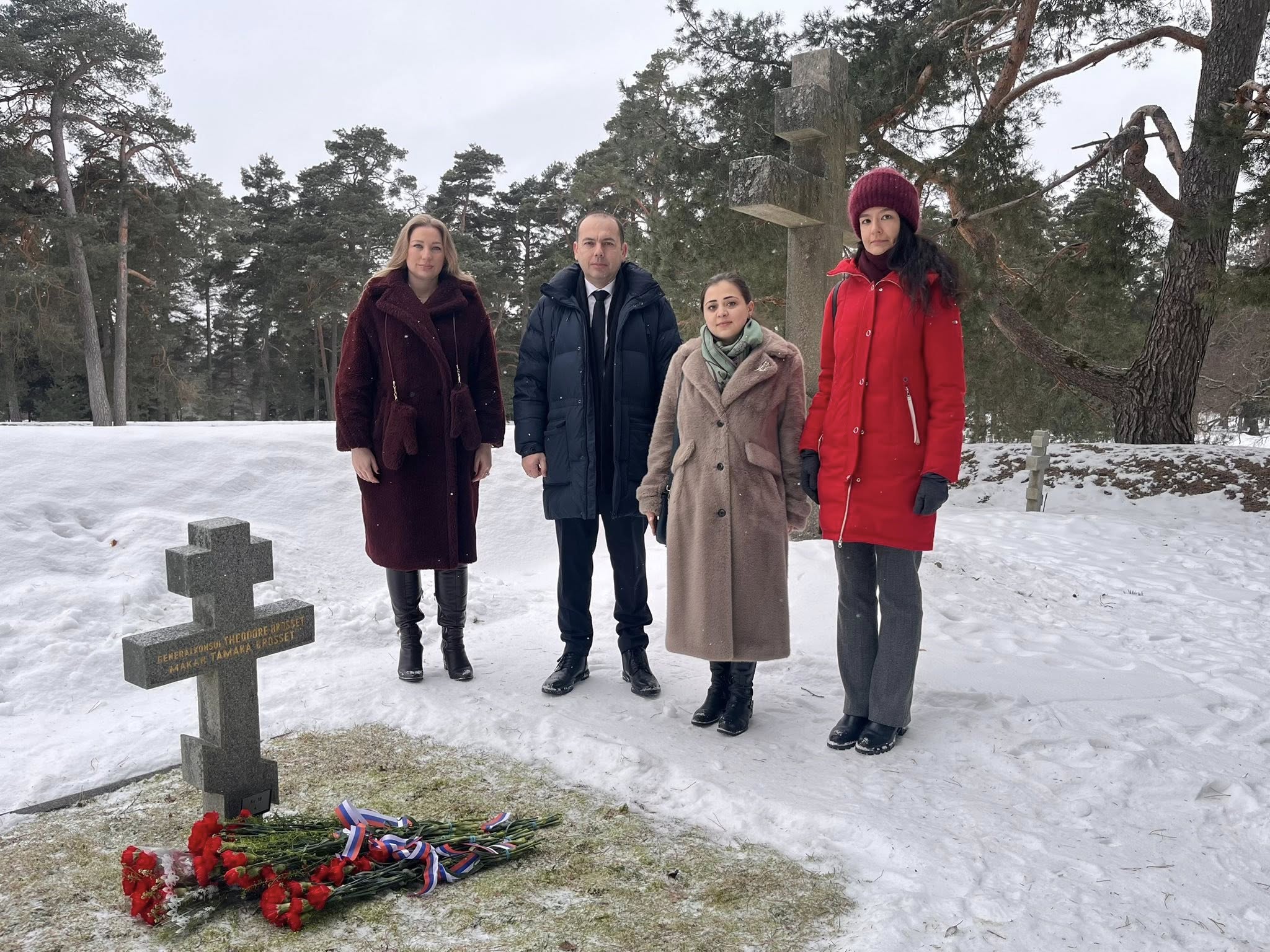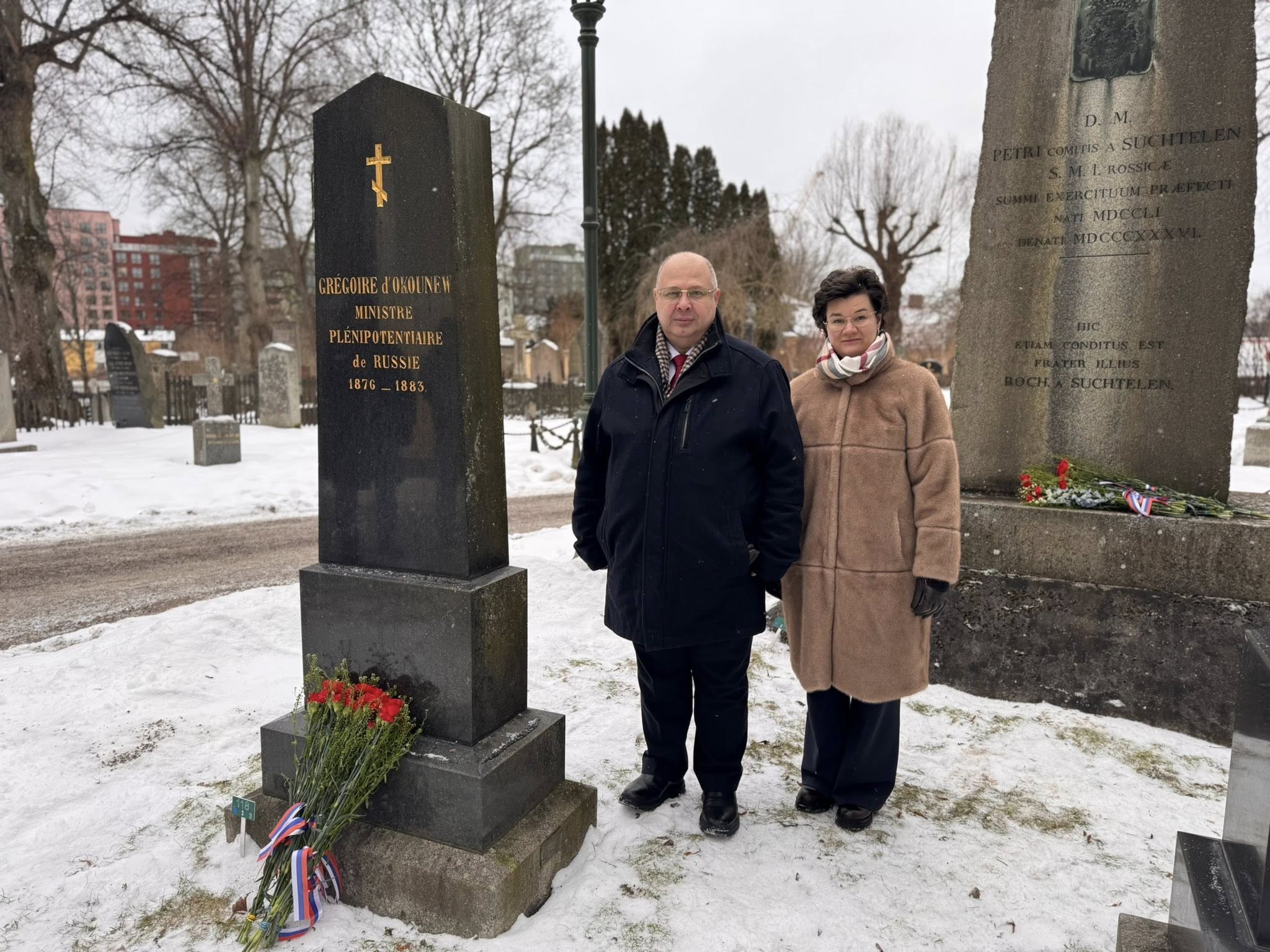 Сотрудники Посольства России в Швеции почтили память похороненных на столичных Cеверном и Лесном (Южном) кладбищах российского посланника в Стокгольме Петра Корниловича Сухтелена (1751-1836), чрезвычайного посланника и полномочного министра в Швеции и Норвегии Григория Николаевича Окунева (1823-1883), а также генерального консула Федора Лаврентьевича Броссе (1873-1953). Граф Петр Сухтелен был ключевой фигурой российской дипломатии на шведском направлении в первой трети XIX века. Сблизившись с французским маршалом Ж.Бернадотом (приглашенным к качестве наследника бездетного шведского монарха, а затем занявшим шведский престол под именем Карл XIV Юхан), в том числе сопровождая его в военных походах, Петр Сухтелен способствовал налаживанию дипломатического диалога между кронпринцем и императором Александром I. В контексте Дня науки России (который отмечается 8 февраля) цветы были возложены также к могиле великого российского математика Софьи Ковалевской.