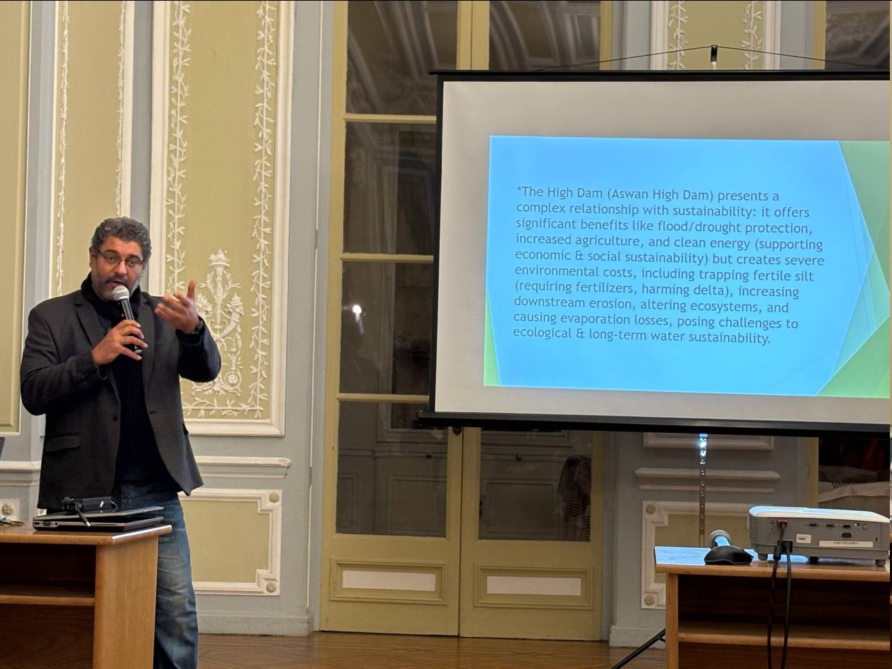 Почётным гостем мероприятия стал профессор Александрийского университета, заведующий кафедрой ирригации и гидрологии Хаймам Махмуд Авад. Он рассказал о технических особенностях строительства плотины и её значении для развития Египта. В завершение встречи участники отметили важность мероприятий, которые напоминают о значимых страницах совместной истории России и Египта, для укрепления отношений между нашими странами.