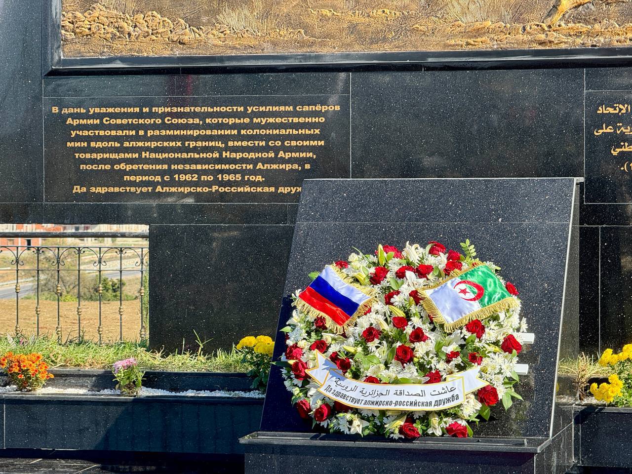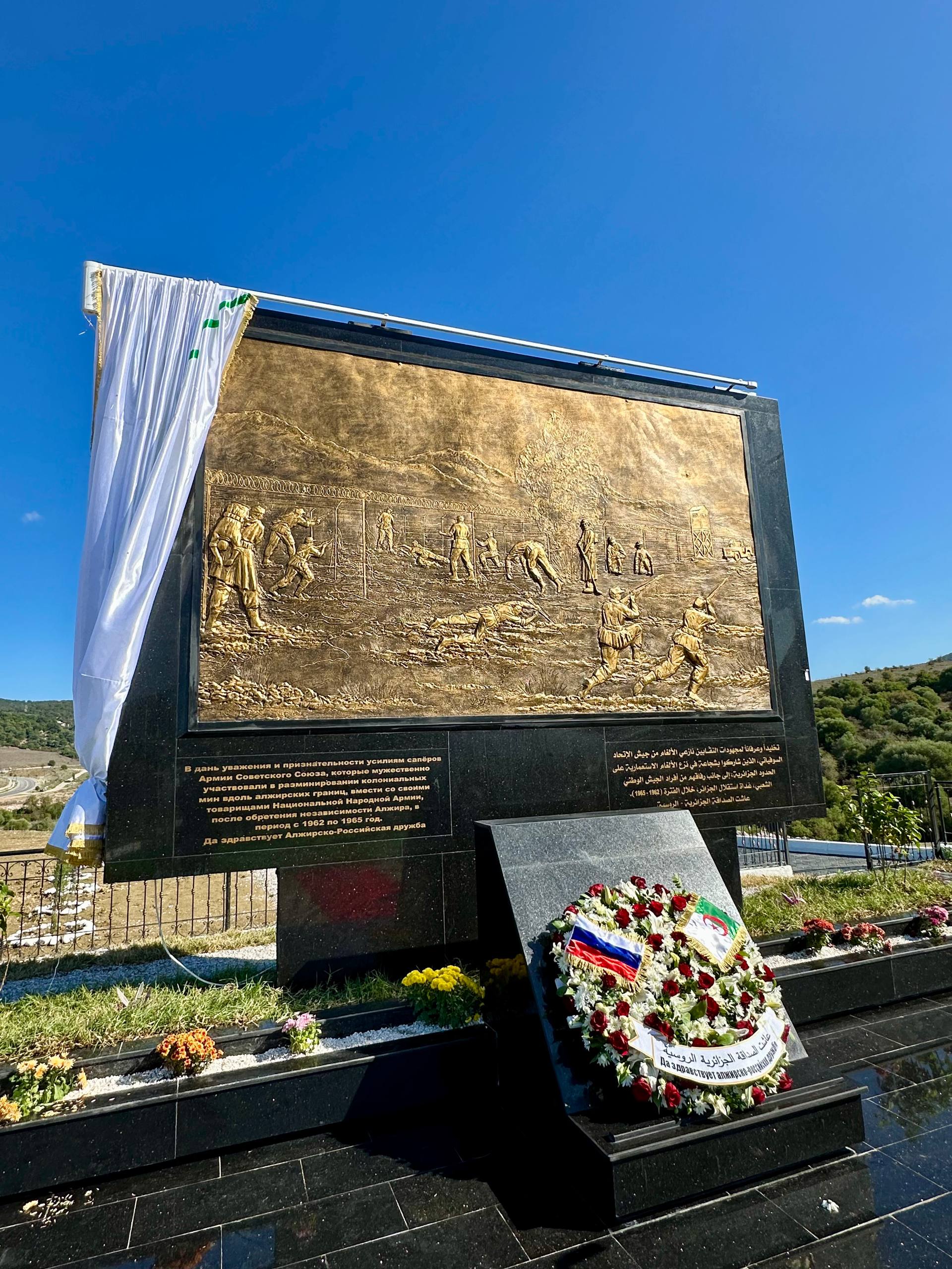 В окрестностях города Эль-Кала в вилайе Эль-Тарф в присутствии ветерана Великой Отечественной войны, военного инженера, полковника А.Павленко состоялось открытие памятника в дань уважения советским сапёрам, которые участвовали в разминировании территории АНДР после обретения страной независимости в 1962 году. Алжирскую сторону представляли Министр внутренних дел, органов местного самоуправления и транспорта Саид Сайюд, руководство вооруженных сил АНДР и Вали провинции Эль-Тарф Мохамед Мезьян. С приветственным словом выступил Посол России в Алжире А.Соломатин.