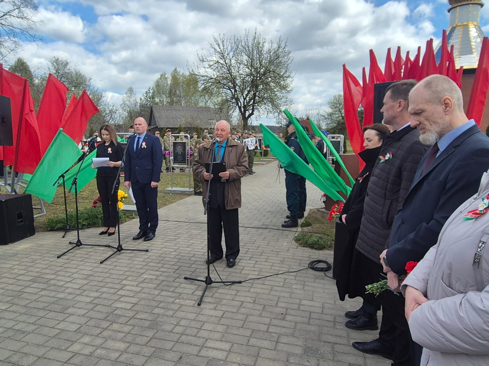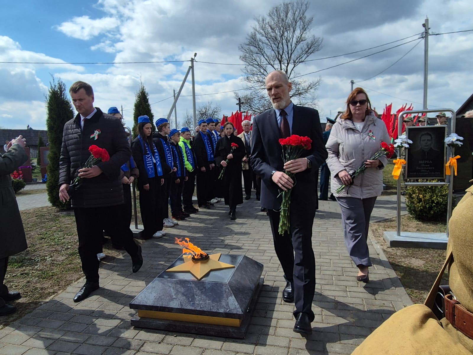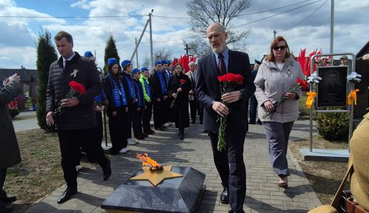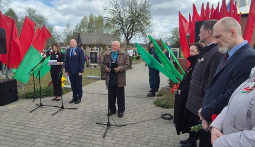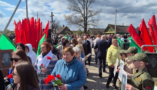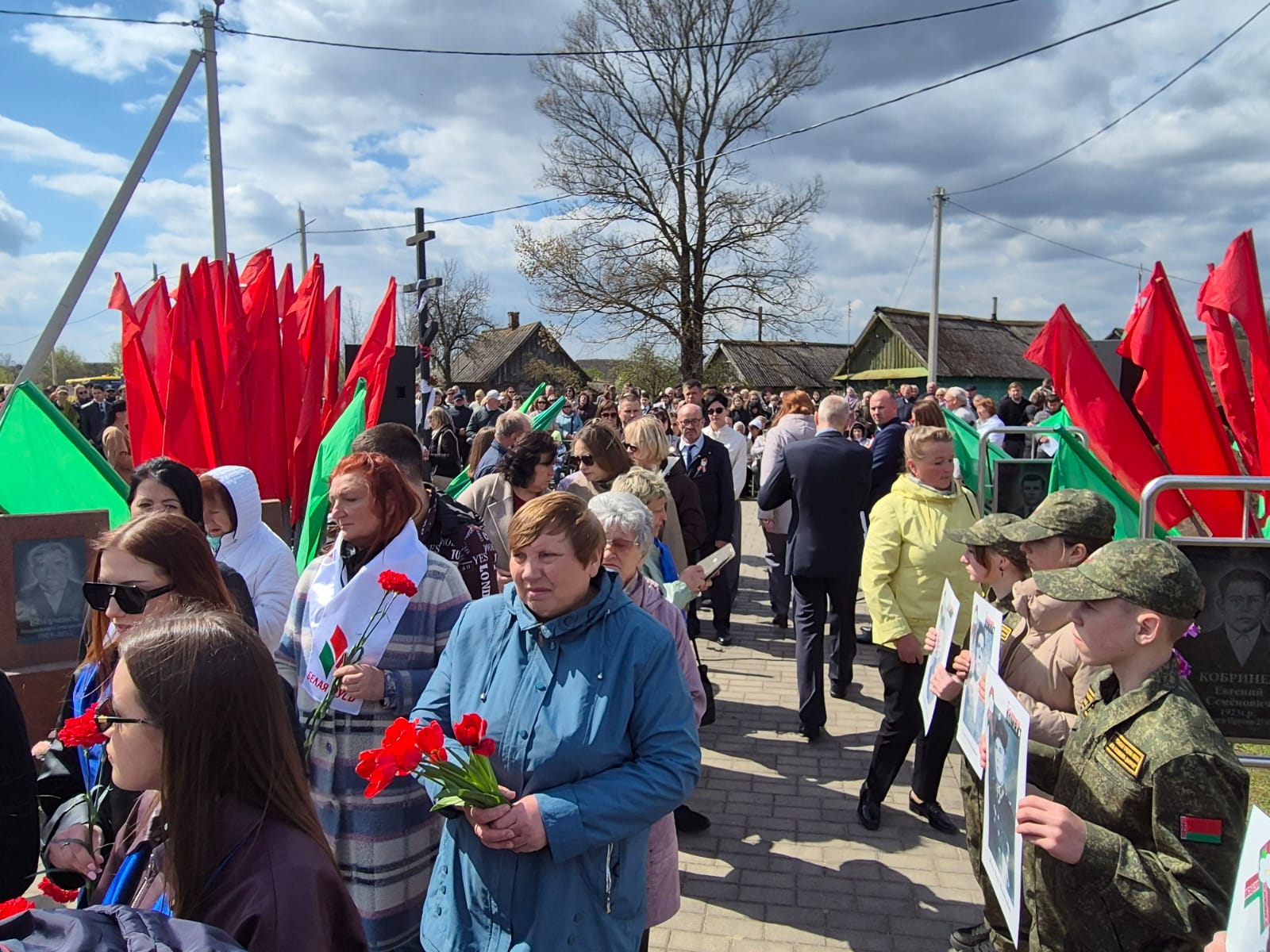 В преддверии Дня Великой Победы в деревне Заречье Пружанского района прошло патриотическое мероприятие. В этой небольшой, даже по районным меркам деревне, на средства, собранные активистами, в 2018 году была создана мемориальная аллея Славы, увековечившая имена односельчан, участвовавших в освобождении Белоруссии и стран Европы от немецкого нацизма. С тех пор, для местных жителей, народный памятник стал местом силы, истинным символом, олицетворяющим благодарность следующих поколений за ратный подвиг и мужество советских воинов, отдавших жизни за свободу и процветание родной земли. Здесь, в Пружанском районе, Брестской области, где все буквально пронизано памятью о Великой войне, особенно остро чувствуется цена Победы. Самоотверженная борьба с захватчиками под Москвой и Сталинградом, в партизанских лесах Полесья и в прорывах операции Багратион, показала сплоченность и несгибаемую волю советского народа. И сегодня, подвиг наших общих предков един, неделим и вечен. Сотрудники Генерального консульства России в Бресте приняли участие в торжествах, почтили память павших героев минутой молчания и возложили цветы к Вечному огню, отдав дань уважения подвигу освободителей.
