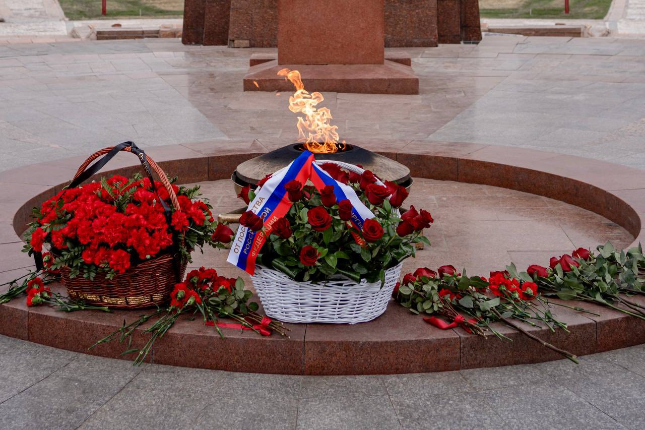 В Бишкеке прошла церемония возложения цветов к Вечному огню на Площади Победы