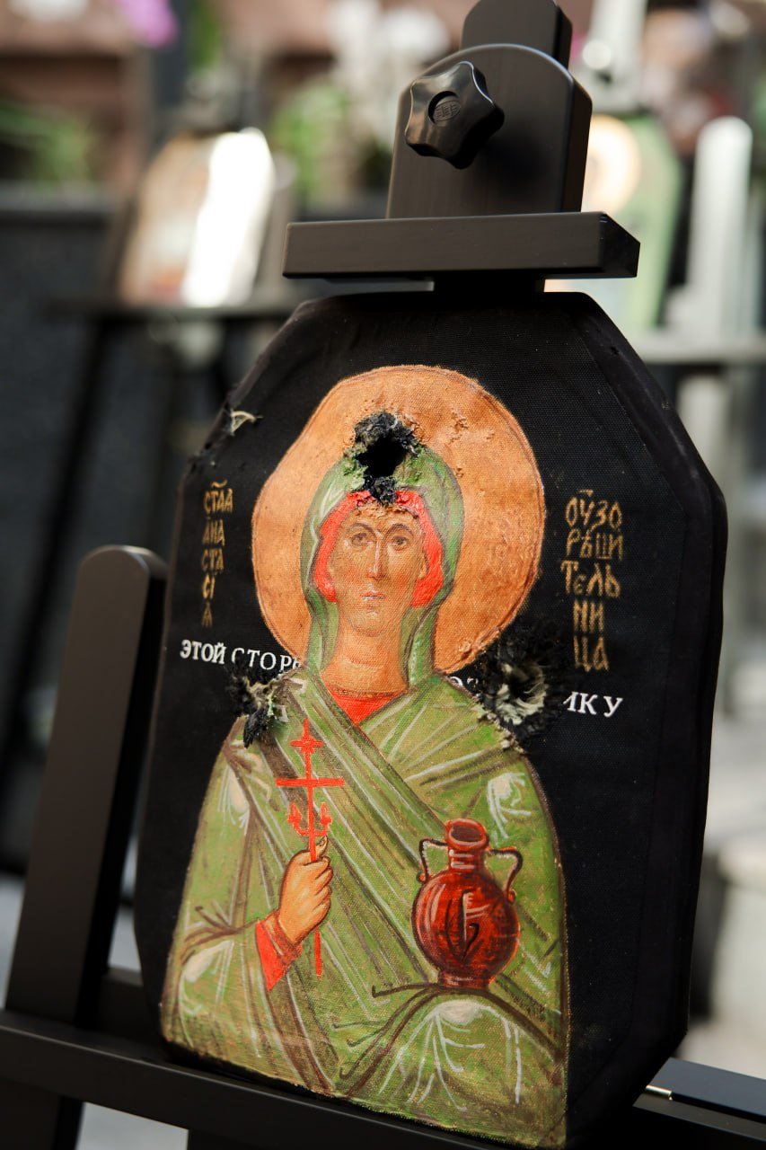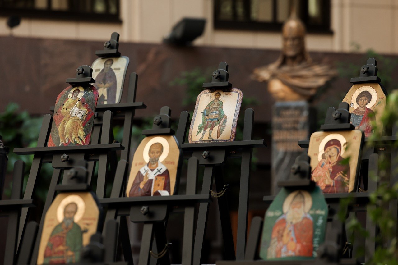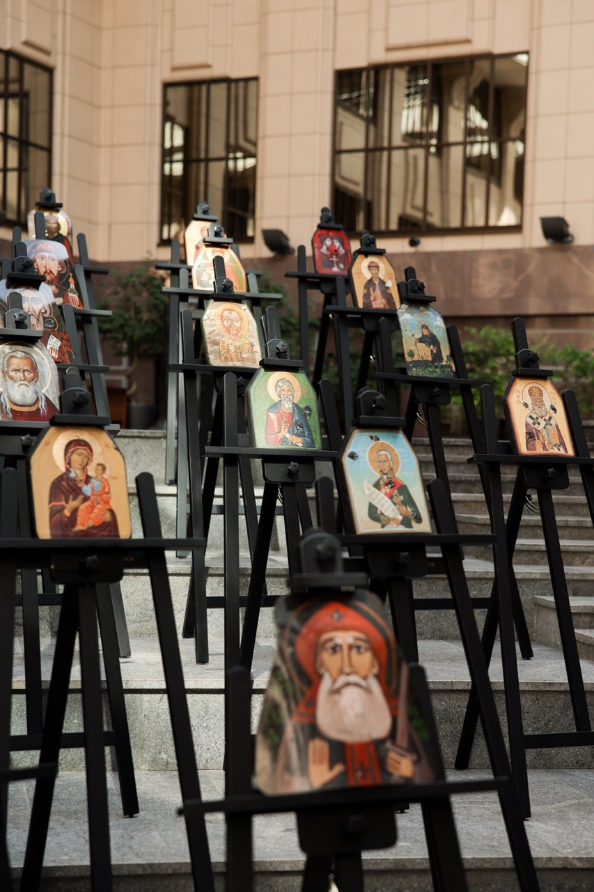 В МИД России прошло торжественное открытие выставки православных образов, написанных на бронелистах, которые спасли жизни бойцам СВО. В Атриуме на Смоленской площади было представлено более сорока художественных работ. С приветствием к организаторам и посетителям выставки обратилась официальный представитель МИД России Мария Захарова. Затем слово взяли ректор Московского государственного академического художественного института имени Сурикова Анатолий Любавин, ректор Академии акварели и изящных искусств Сергея Арустамова-Андрияка и иеромонах Данилова Монастыря отец Михей. Идея выставки принадлежит нашим защитникам Отечества — бойцам, сражающимся на линии боевого столкновения. Это во многом продолжение древнерусской традиции изображения на своём боевом снаряжении образов святых покровителей. Каждое «полотно» вынесено с поля боя, каждое из них — это спасённая жизнь. Образы к написанию на бронелистах были предложены священниками Московского Данилова монастыря и выполнены учащимися Московского государственного академического художественного института имени Сурикова и Академии акварели и изящных искусств Сергея Андрияки. Проект уникален, его реализация потребовала выработки специальной техники письма, тщательной работы с материалами. Все образы были освящены. Некоторые из них были переданы в московские онкологические центры и образовательные учреждения. Планируется, что в дальнейшем они будут размещены в образовательных учреждениях, став своеобразными местами памяти подвигов защищающих Родину бойцов.
