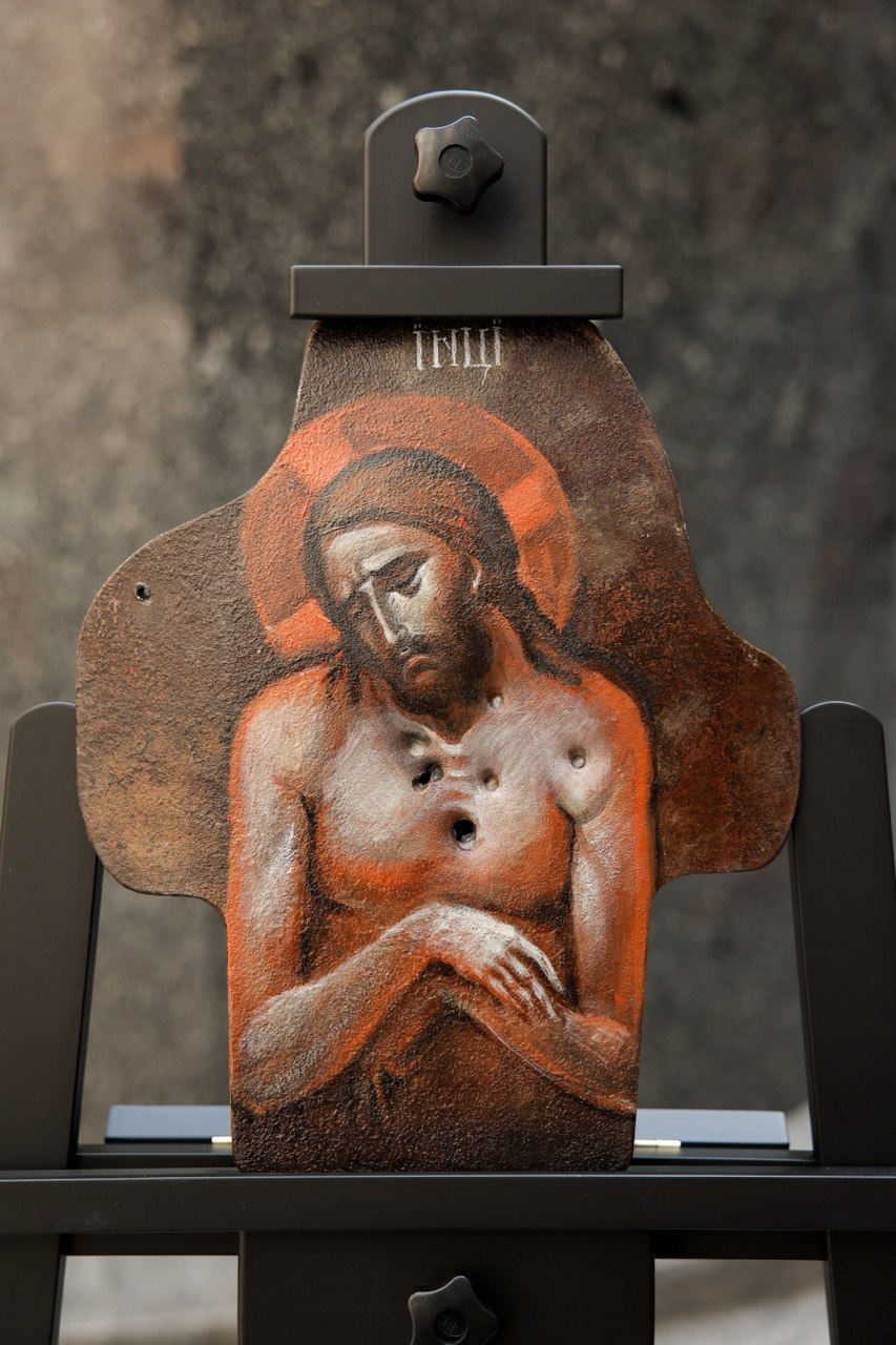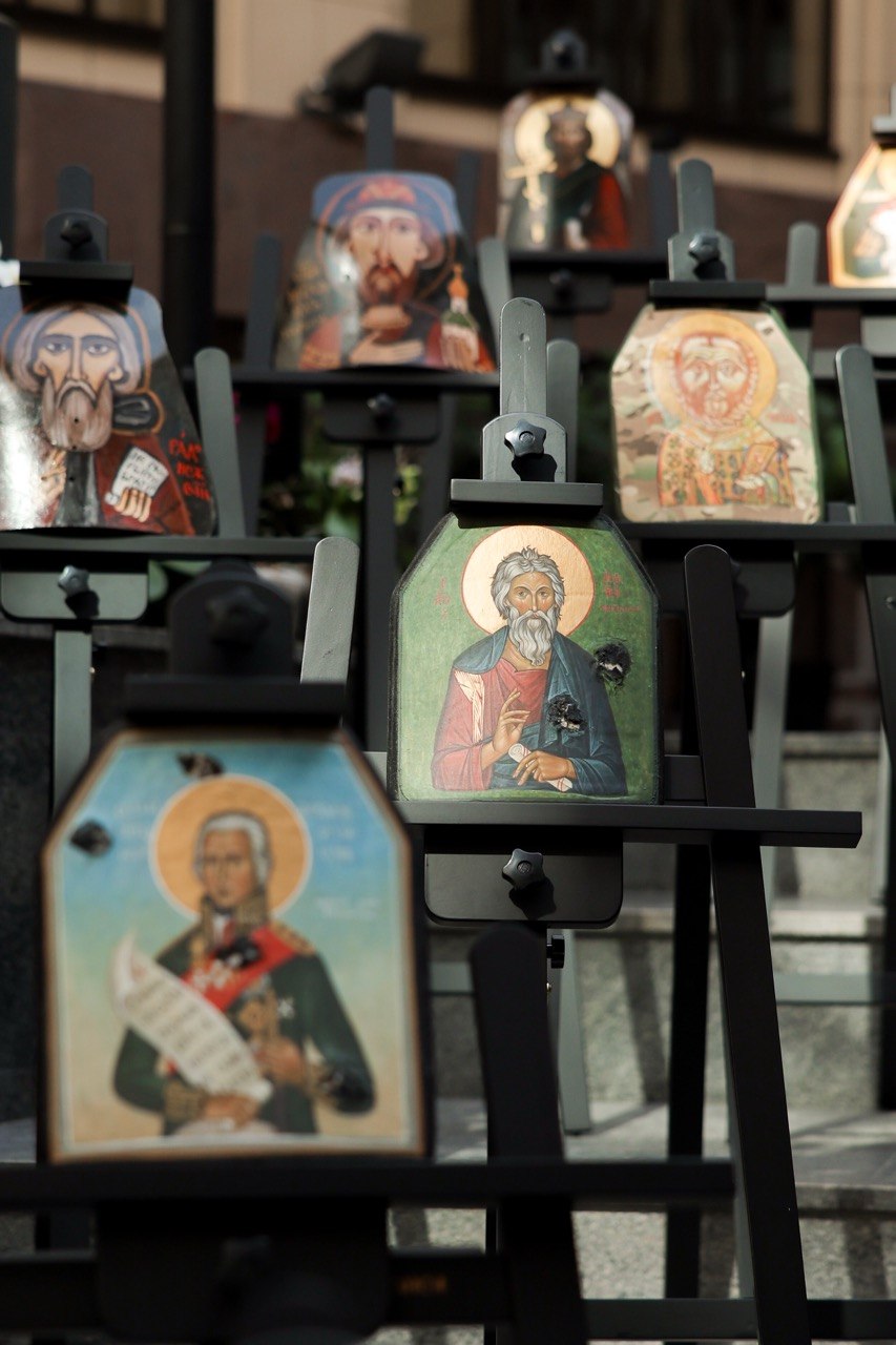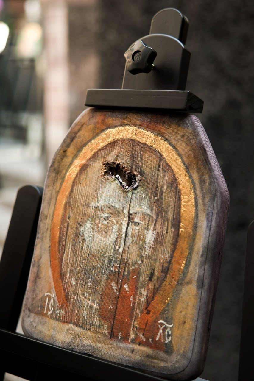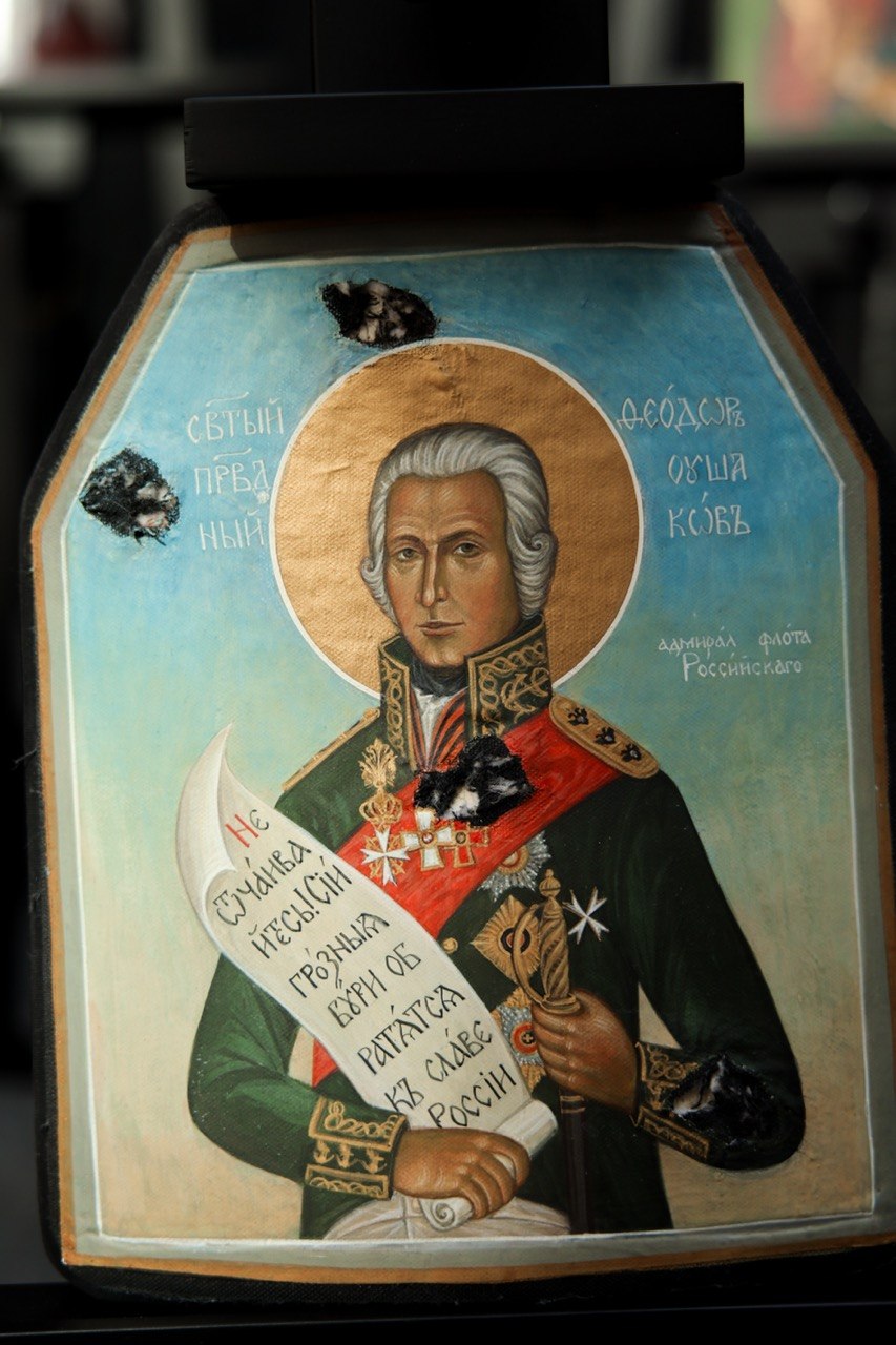В МИД России прошло торжественное открытие выставки православных образов, написанных на бронелистах, которые спасли жизни бойцам СВО. В Атриуме на Смоленской площади было представлено более сорока художественных работ. С приветствием к организаторам и посетителям выставки обратилась официальный представитель МИД России Мария Захарова. Затем слово взяли ректор Московского государственного академического художественного института имени Сурикова Анатолий Любавин, ректор Академии акварели и изящных искусств Сергея Арустамова-Андрияка и иеромонах Данилова Монастыря отец Михей. Идея выставки принадлежит нашим защитникам Отечества — бойцам, сражающимся на линии боевого столкновения. Это во многом продолжение древнерусской традиции изображения на своём боевом снаряжении образов святых покровителей. Каждое «полотно» вынесено с поля боя, каждое из них — это спасённая жизнь. Образы к написанию на бронелистах были предложены священниками Московского Данилова монастыря и выполнены учащимися Московского государственного академического художественного института имени Сурикова и Академии акварели и изящных искусств Сергея Андрияки. Проект уникален, его реализация потребовала выработки специальной техники письма, тщательной работы с материалами. Все образы были освящены. Некоторые из них были переданы в московские онкологические центры и образовательные учреждения. Планируется, что в дальнейшем они будут размещены в образовательных учреждениях, став своеобразными местами памяти подвигов защищающих Родину бойцов.
