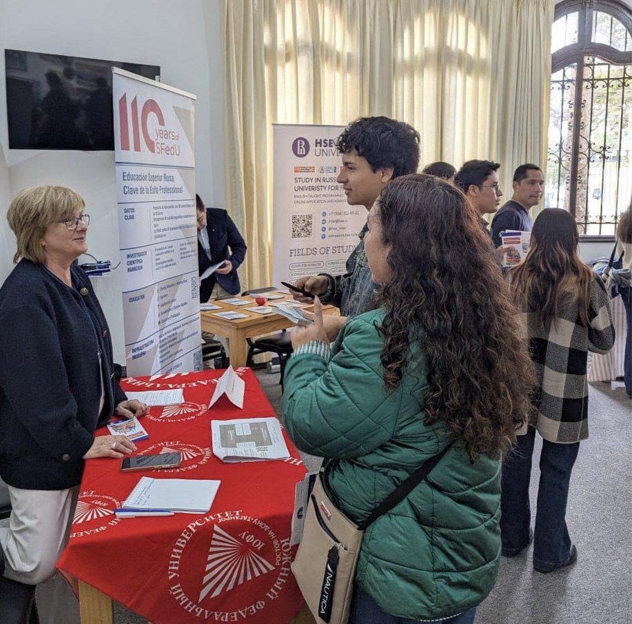 В Лиме состоялась первая образовательная ярмарка «Образование без границ», объединившая ведущие университеты России и десятки молодых людей, мечтающих учиться за рубежом. Гости узнали о программах российских ВУЗ-ов, посетили лекции, познакомились с культурой России, сделали первые шаги в изучении русского языка, услышали вдохновляющие истории выпускников и попробовали традиционные сладости. Напоминаем, что подать заявку можно на сайте: education-in-russia.com.