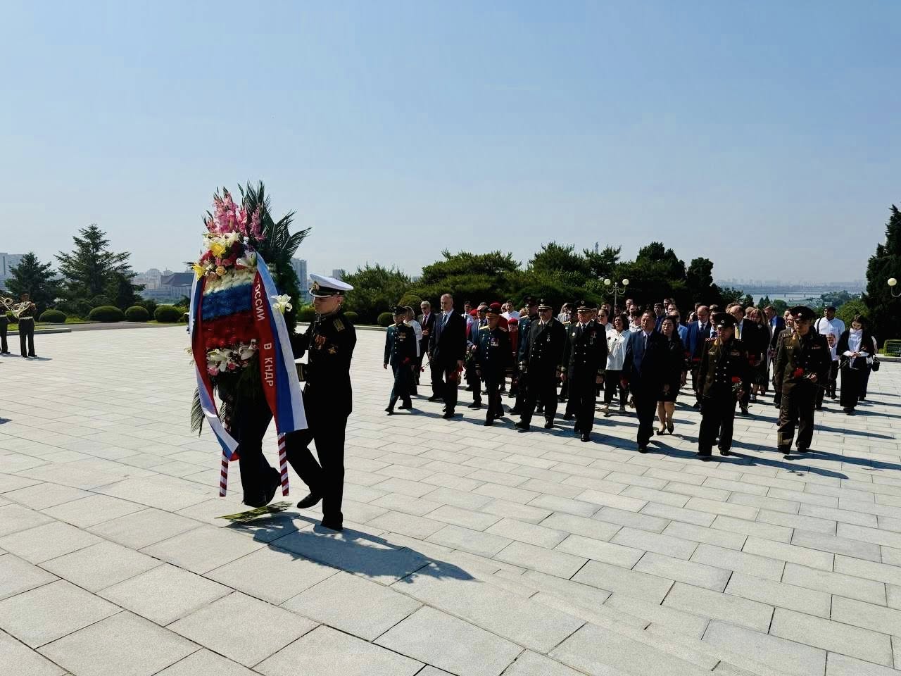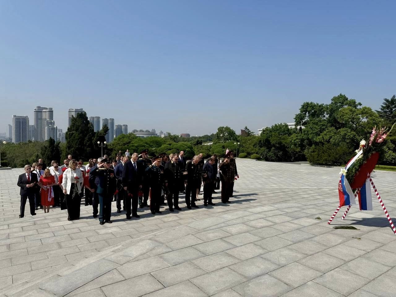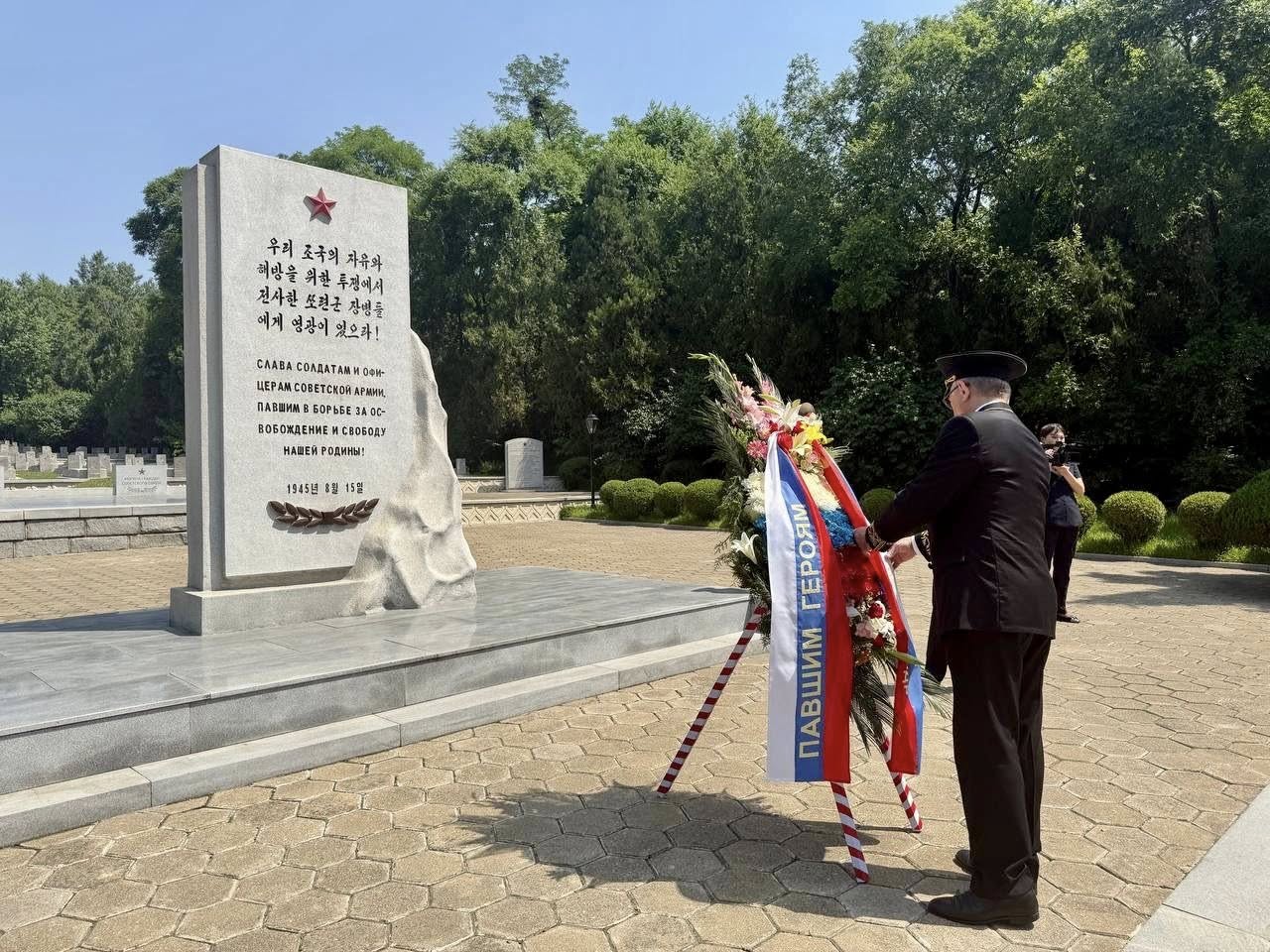 В Пхеньяне состоялась торжественная церемония возложения венков и цветов к Монументу Освобождения на сопке Моранбон и на кладбище советских воинов в столичном районе Садон. В этом значимом событии приняли участие Посол России А.Мацегора, сотрудники Посольства и члены их семей. С корейской стороны в честь российского государственного праздника цветы возложили представители МИД и Министерства обороны КНДР. Торжественность церемонии придал почетный караул и военный оркестр Корейской народной армии.
