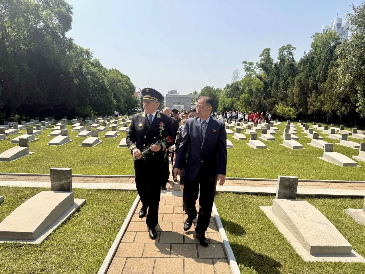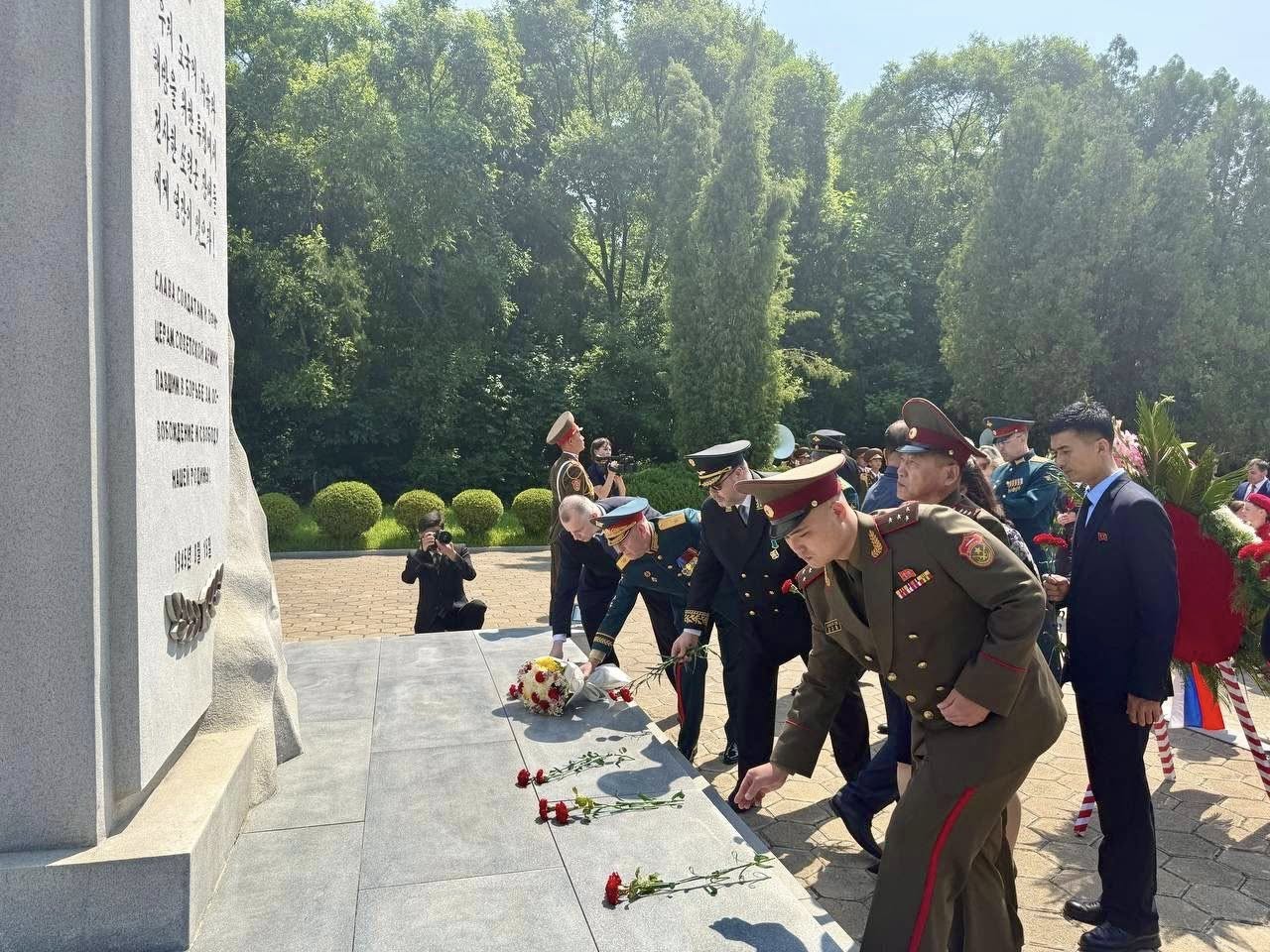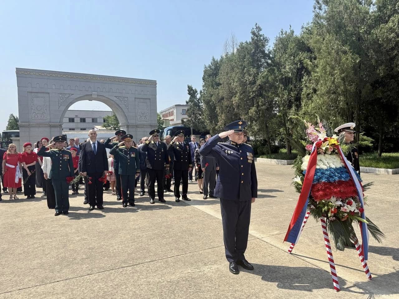 В Пхеньяне состоялась торжественная церемония возложения венков и цветов к Монументу Освобождения на сопке Моранбон и на кладбище советских воинов в столичном районе Садон. В этом значимом событии приняли участие Посол России А.Мацегора, сотрудники Посольства и члены их семей. С корейской стороны в честь российского государственного праздника цветы возложили представители МИД и Министерства обороны КНДР. Торжественность церемонии придал почетный караул и военный оркестр Корейской народной армии.