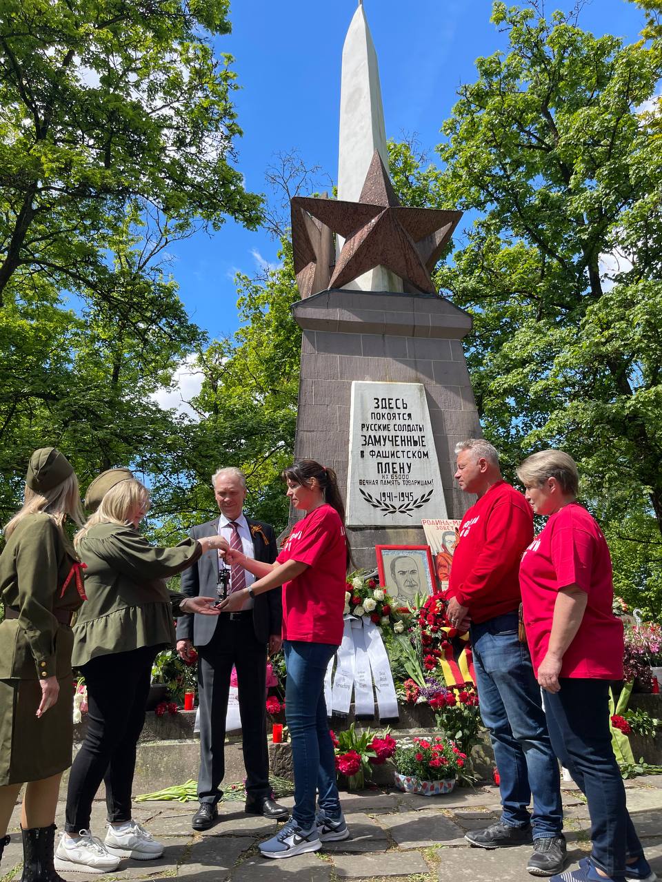 На мемориальном кладбище в городе Шлос-Хольте-Штукенброк несколько тысяч русскоязычных соотечественников и немецких общественников собрались для участия в памятных мероприятиях по случаю 80-летия Великой Победы. Мероприятие посетил Генконсул О.Красницкий. Генконсул поблагодарил соотечественников и всех здравомыслящих жителей Германии, которые воздают память подвигу и жертвам советского народа, спасшего человечество от уничтожения коричневой чумой. Совместно с участниками дипломаты возложили венки и цветы к монументу узникам концентрационного лагеря военнопленных «Штукенброк-Зенне» (Stalag 326 VI K), где похоронены более 65000 советских военнопленных и подневольных рабочих. В рамках мероприятия состоялись «Бессмертный полк», заупокойная лития, концерт с выступлениями активистов, чтением стихов и пением песен, передача «Огня памяти», который был зажжён у Вечного огня в Александровском саду в Москве.