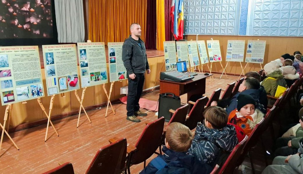 По приглашению мэрии села Бешалма Комратского района Гагаузской автономии в «Доме культуры» состоялась презентация выставки фотографий и документов «Из безвестности в бессмертие». Экспозицию, приуроченную к 80-летию Победы в Великой Отечественной войне юным зрителям - учащимися гимназии имени М.Кёся, - представил автор, глава «Поискового движения Молдавии», председатель Национального Координационного Комитета «Победа» Алексей Петрович. Он рассказал о судьбах солдат и офицеров Красной, имена которых удалось восстановить в ходе исследований на местах сражений Великой Отечественной войны. Истории из подвигов нашли своё отражение на выставочных стендах. После выставки, учащимся был показан документальный фильм «Иван Солтыс. Путь Героя». Лента снята в рамках медиаэкспедиции по установлению места погребения нашего соотечественника, Героя Советского Союза, Ивана Сидоровича Солтыса, погибшего в боях на территории Польши зимой 1945 года. Мероприятие прошло в рамках объявленного в Гагаузии Года Победы, при поддержке депутата Народного собрания Григория Дюльгера, мэрии села Бешалма, администрации лицея имени М.Кёся, Русского дома в Кишиневе и Фонда поддержки и защиты прав соотечественников.