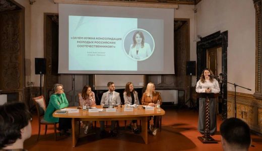 В Риме прошла III Молодежная конференция российских соотечественников Италии. III Конференция Совета молодых российских соотечественников Италии собрала тридцать делегатов от Генуи до Неаполя, а также приглашенных экспертов из Франции, Грузии и Молдавии для обмена международным опытом. Конференцию открыли приветственными словами ключевые партнеры и наставники: второй секретарь Посольства России в Италии Сергей Бондаренко, директор «Русского Дома» в Риме Дарья Пушкова, президент КСОРС ЦЮ, сопредседатель КСАРСИ Ирина Перерва. К участникам также обратились организаторы Конференции — председатель Совета молодых российских соотечественников Италии Дарья Бырсану, лидер молодежного движения при Ассоциации «Unita» Наталья Греер и модератор конференции, координатор Международного Движения «Бессмертный Полк» в Италии Светлана Нестеренко. Гости подчеркнули важность консолидации молодых соотечественников, отметили энергию и потенциал участников, а также выразили готовность поддерживать новые инициативы, направленные на сохранение культурной идентичности и развитие гуманитарных связей между Россией и Италией.