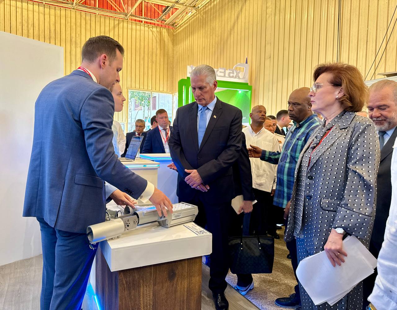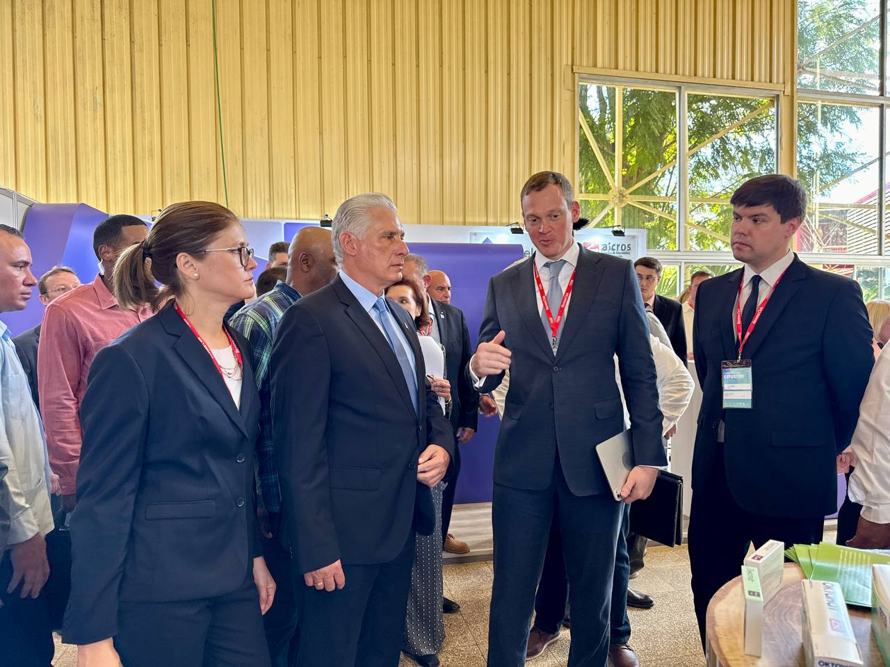 На Гаванской международной ярмарке «FIHAV-2025» состоялась церемония открытия российского павильона, в которой приняли участие Первый секретарь ЦК Компартии Кубы, Президент Республики М.Диас-Канель Бермудес, Премьер-министр М.Марреро Крус и заместитель Премьер-министра, Министр внешней торговли и иностранных инвестиций О.Перес-Олива Фрага. С российской стороны на церемонии присутствовали Президент Торгово-промышленной палаты Российской Федерации С.Катырин, Статс-секретарь – заместитель Министра промышленности и торговли Р.Чекушов, Посол России на Кубе В.Коронелли, Председатель Делового совета Россия-Куба А.Талыбов, Генеральный директор Национального комитета содействия экономическому сотрудничеству со странами Латинской Америки Т.Машкова, а также руководители двух регионов – Губернатор Санкт-Петербурга А.Беглов и Губернатор Рязанской области П.Малков. По завершении официальной части кубинский Президент в сопровождении представителей российской делегации произвел осмотр павильона, на котором была представлена продукция свыше сорока отечественных компаний.