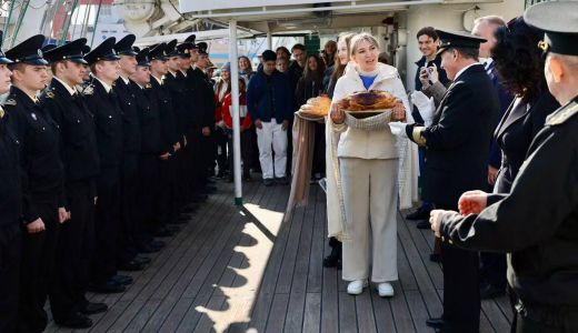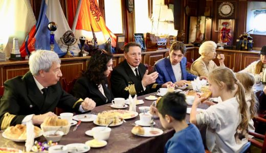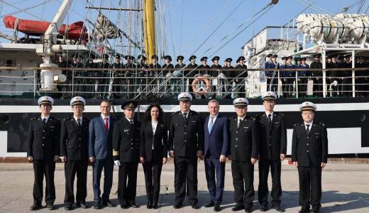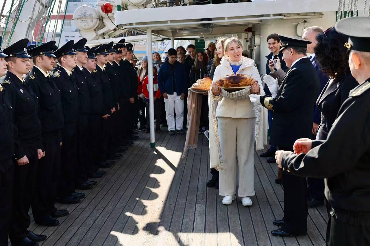 Визит знаковый – это первое посещение КНР после длительного перерыва, нацеленное на восстановление профильной академических связей между двумя морскими державами. На борту фрегата находятся 114 курсантов, проходящих плавательную практику в реальных условиях Японского, Желтого и Восточно-Китайского морей. Заход осуществлен по приглашению администрации университета «Neusoft». По доброй русской традиции экипаж встретили «хлебом-солью» Генконсул России в Шэньяне Наталья Прыжкова, представители Посольства, российских соотечественников и местных властей. Корабль будет находиться в порту Даляня три дня, в течение которых запланирована обширная программа: парусник откроют для свободного посещения жителями города, а курсанты посетят памятник советским воинам и примут участие в спортивных соревнованиях.