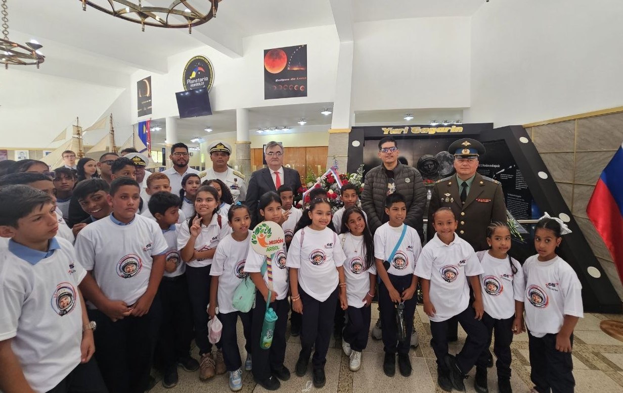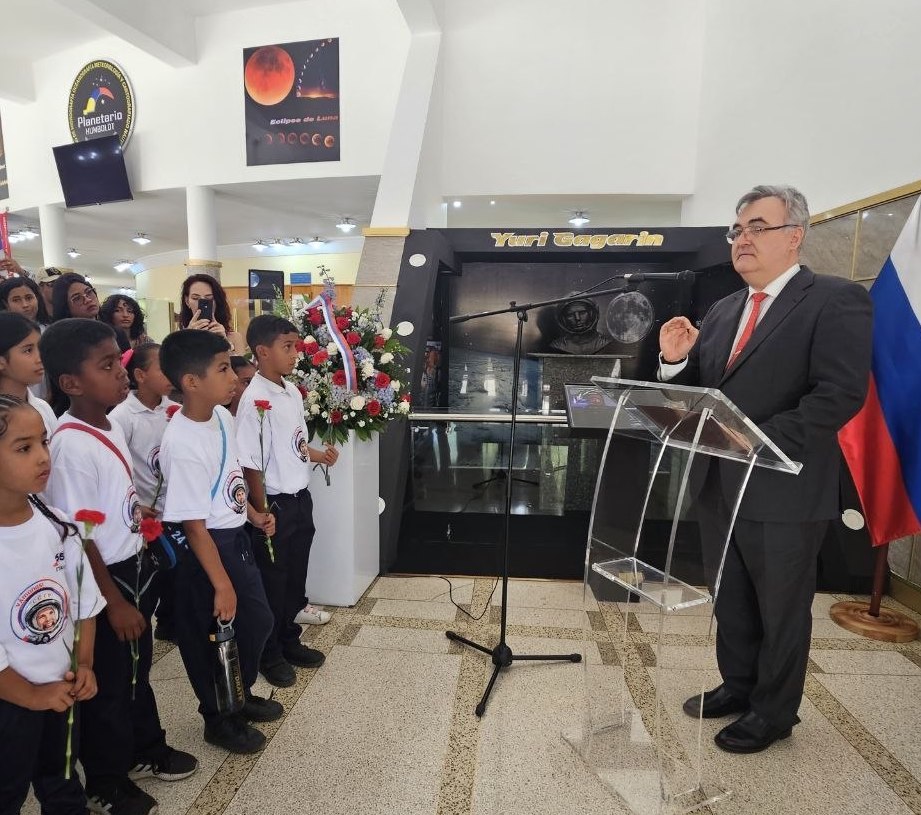 В Планетарии Каракаса состоялось торжественная памятная церемония, посвящённая 65-летию исторического полёта Юрия Гагарина - первого человека, открывшего человечеству дорогу в космос. В мероприятии приняли участие Посол России в Венесуэле С.Мелик-Багдасаров, глава Службы гидрографии, океанографии, метеорологии и морской картографии контр-адмирал К.Такоа, директор Планетария имени Гумбольдта полковник Р.Боливар, представители Миссии «Дерево», секретарь по вопросам экомоциализма, науки и технологий муниципалитета Сукре Д.Сайаго, а также венесуэльские школьники. В ходе церемонии участники возложили цветы к бюсту космонавта, почтив подвиг Гагарина, чей полёт на корабле Восток-1 открыл новую эру в истории человечества. Было отмечено значение космоса как пространства мирного сотрудничества и совместного развития, а также вклад России как одной из ведущих космических держав мира.