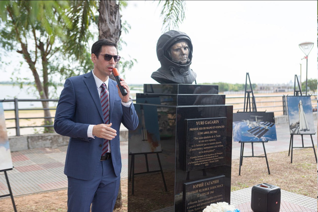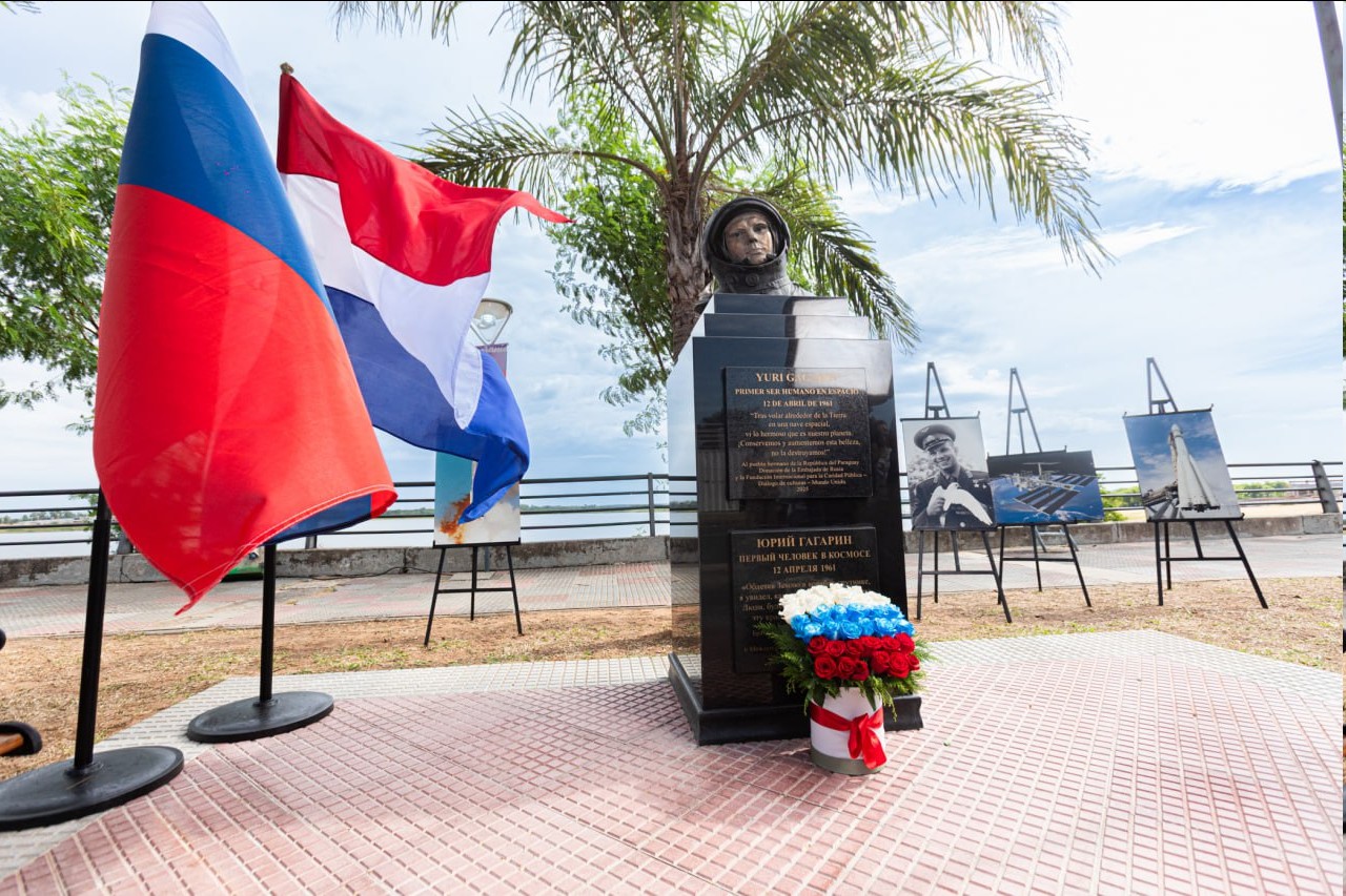 На набережной парагвайского города Асунсьон при поддержке Благотворительного фонда «Диалог культур – единый мир» состоялось торжественное открытие памятника Юрию Гагарину – первому человеку, покорившему космическое пространство. В церемонии приняли участие представители мэрии города Асунсьон, дипломатического корпуса, органов исполнительной власти, российские соотечественники, а также директор «Русского Дома» в Буэнос-Айресе. Открытие монумента состоялось в преддверии 65-летия Международного дня космонавтики и стало значимым культурным и общественным событием, подчеркнувшим международное значение подвига Юрия Гагарина и его объединяющую роль для всего человечества.