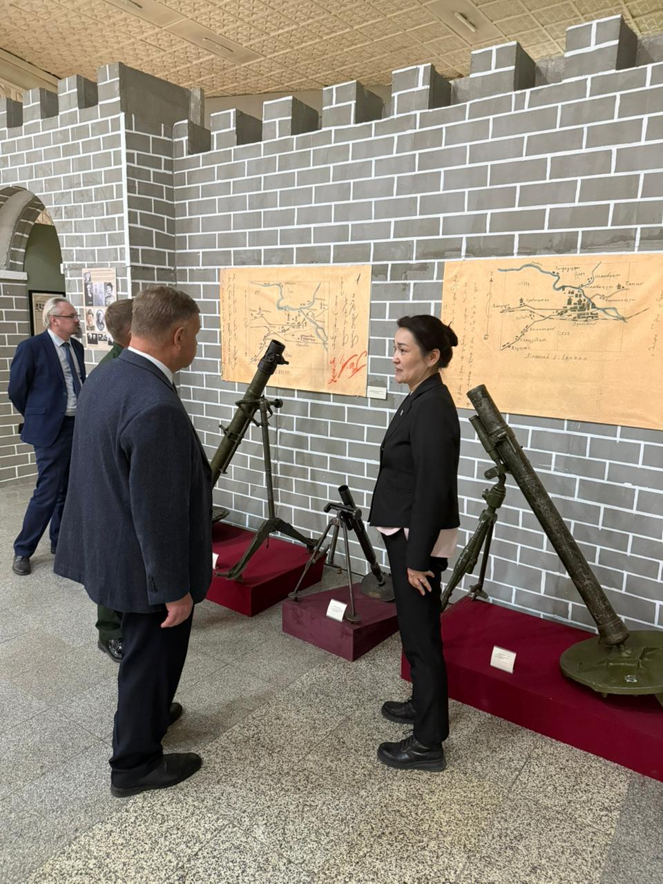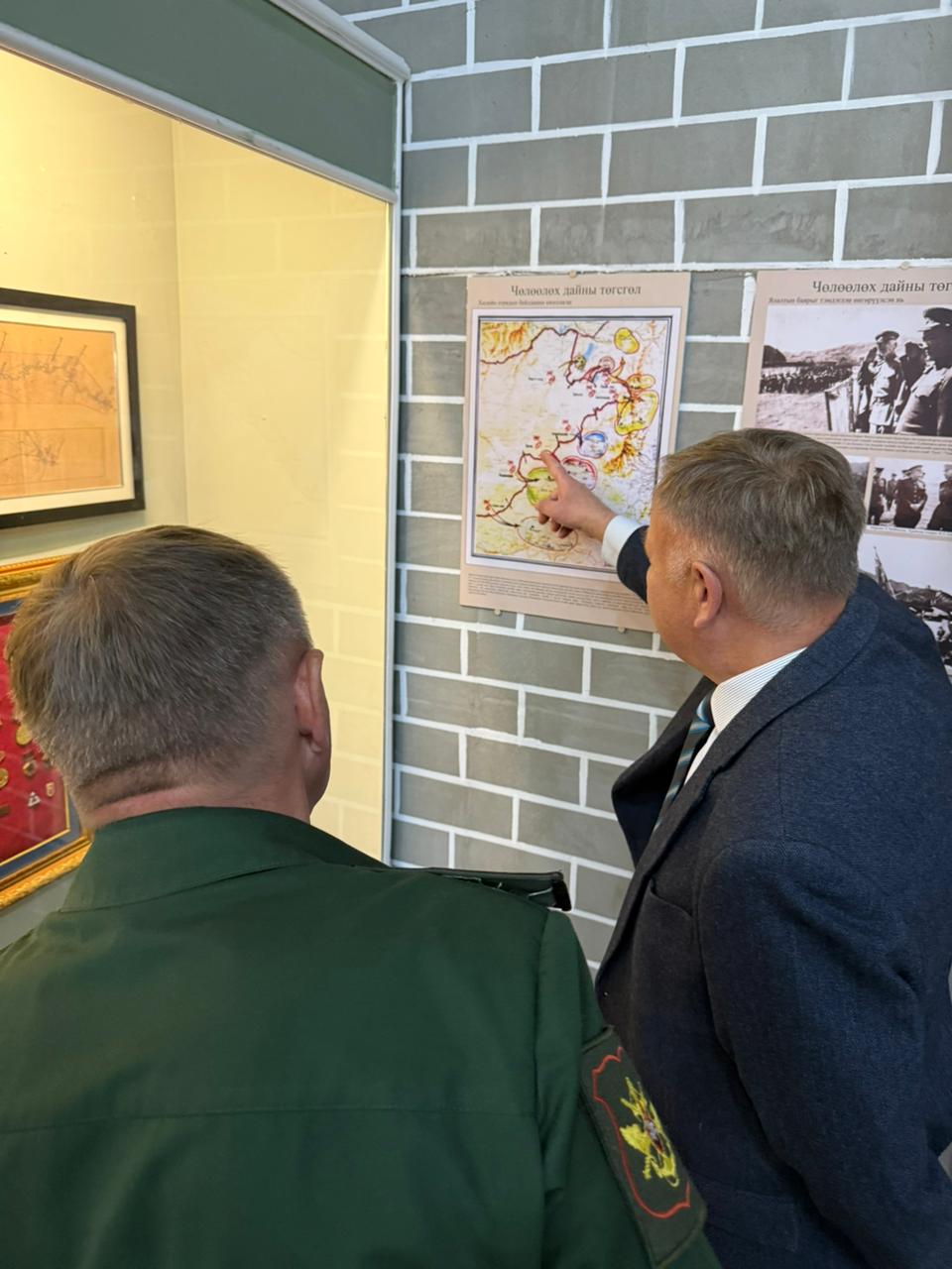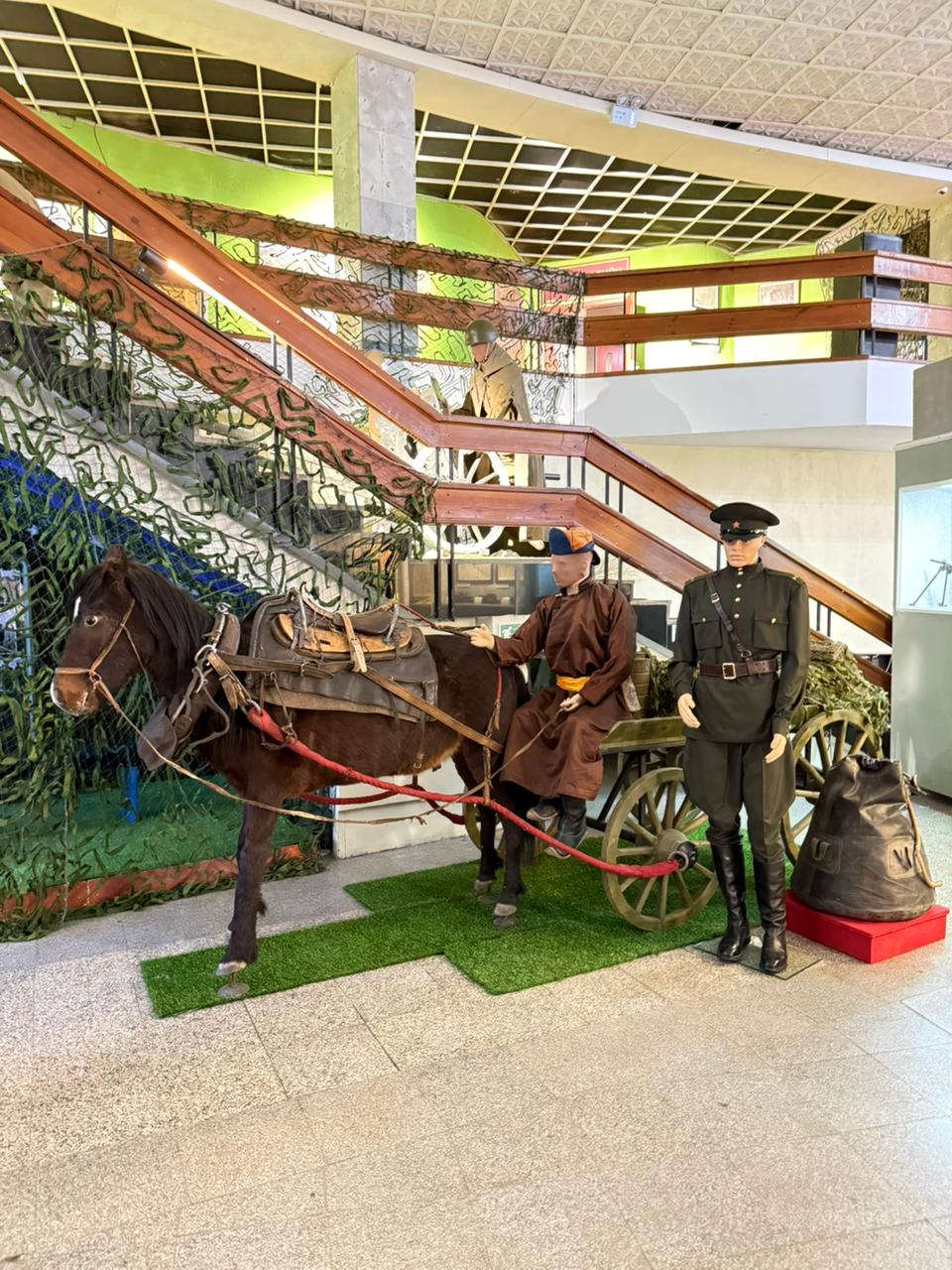 Сотрудники Посольства России в Монголии во главе с Чрезвычайным и Полномочным Послом А.Евсиковым и Военным и военно-воздушным атташе генерал-майором П.Петруниным по приглашению Министерства обороны Монголии посетили расположенный в Улан-Баторе Музей монгольского воинства. В ходе экскурсии директор Музея Маршала Советского Союза Георгия Жукова подполковник Д.Амартайван представила почетным гостям экспозицию, включающую многочисленные документы и карты, отдельные образцы вооружения, форм и мундиров 1930-1940-х годов, реконструкцию военного госпиталя времен Маньчжурской стратегической наступательной операции 1945 года, а также оригиналы знамен монгольских воинских формирований, принимавших участие в вооруженных конфликтах времен Второй мировой войны. В рамках мероприятия состоялась встреча с представителями Монгольской ассоциации полковников, в ходе которой был обсужден план совместного празднования в следующем году таких юбилеев, как 105-я годовщина установления дипломатических отношений между Россией и Монголией, 130-летие со дня рождения четырежды Героя Советского Союза, Героя МНР Георгия Жукова и 90-летие со дня подписания советско-монгольского Протокола о взаимной помощи. Отдельно рассмотрены вопросы подготовки мемориальной акции, посвященной монгольскому верблюжьему каравану, который в годы Великой Отечественной войны доставил материальную помощь монгольского народа советским братьям из монгольского Кобдо (Ховд) до города Бийск Алтайского края.