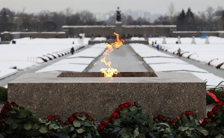 Владимир Путин приехал также на Пискарёвское мемориальное кладбище в Санкт-Петербурге. Глава государства возложил венок к монументу «Мать-Родина», почтив память погибших ленинградцев и защитников города. В 186 братских могилах и шести тысячах индивидуальных захоронений Пискарёвского кладбища покоятся 420 000 жителей Ленинграда, погибших от голода, холода, болезней, бомбёжек и артобстрелов, а также 70 000 воинов. На мемориальной стене за спиной «Матери-Родины» высечены слова поэтессы Ольги Берггольц: «Никто не забыт и ничто не забыто». Блокада Ленинграда войсками нацистской Германии длилась с 8 сентября 1941 года по 27 января 1944 года — осаждённый город боролся за жизнь 872 дня. По истечении этого срока в Северной столице осталось не более 800 000 жителей из трёх миллионов, проживавших в Ленинграде и его пригородах до начала окружения.